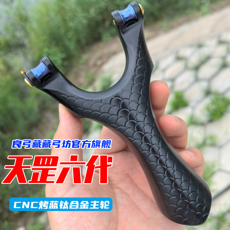 📚 升级天罡滑轮弹弓第六代7075航空铝高精度钛合金滚轴射鱼PLUS顶卡