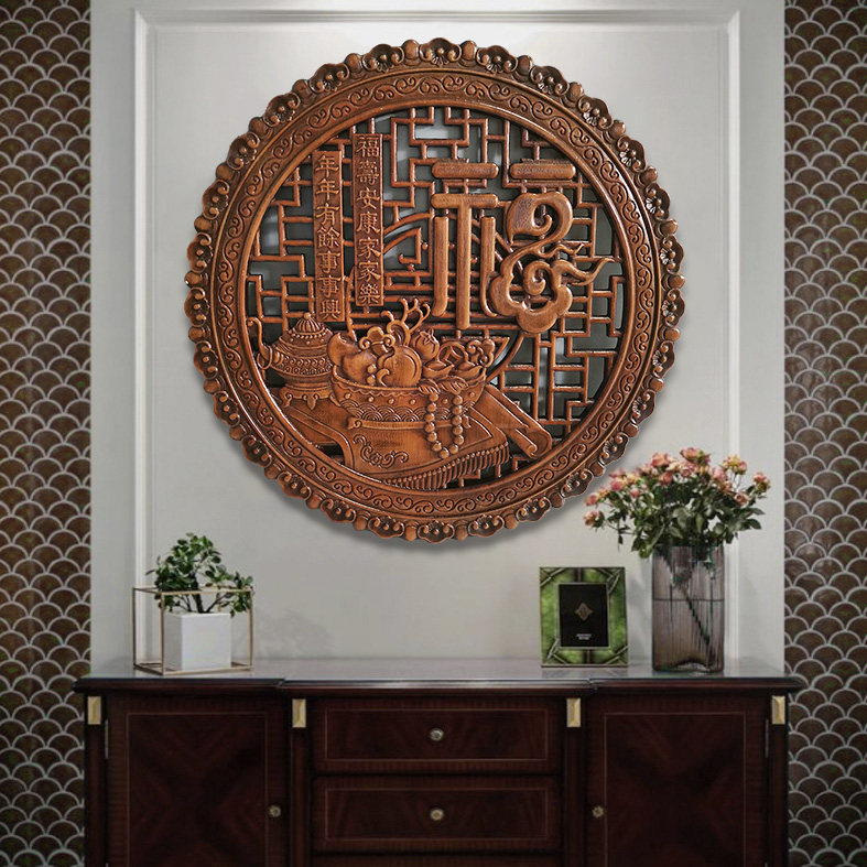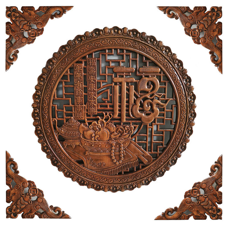 📚 东阳木雕挂件香樟木装饰画工艺品中式仿古实木福字背景墙客厅壁挂