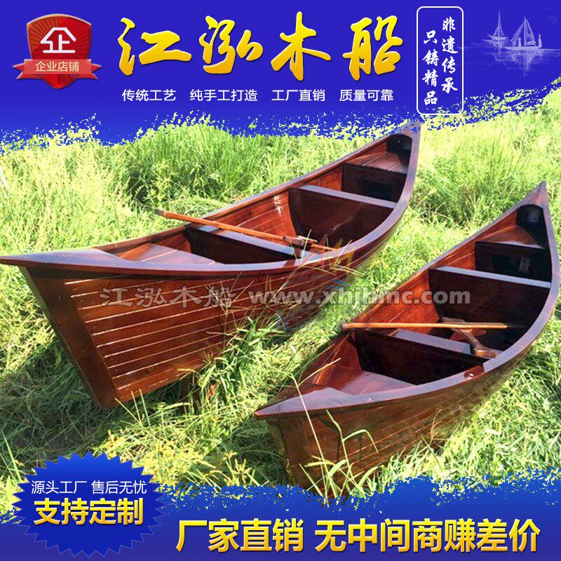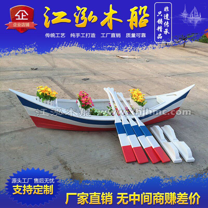 📚 木船户外景观装饰两头尖手划船欧式木船实木木质仿古小木船道具船