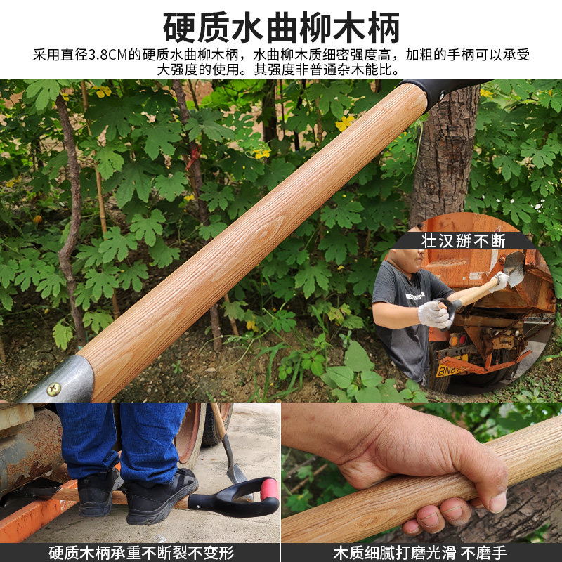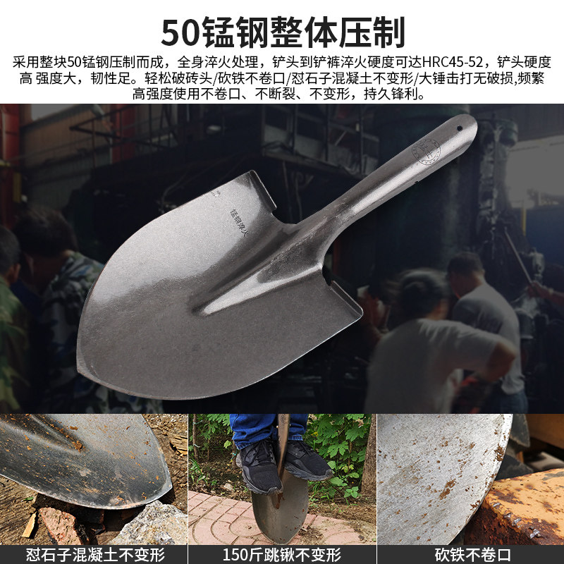 📚 省力钢锹锰钢淬火防汛战备锹家车载圆头挖土锨探宝专用锹工具铁铲