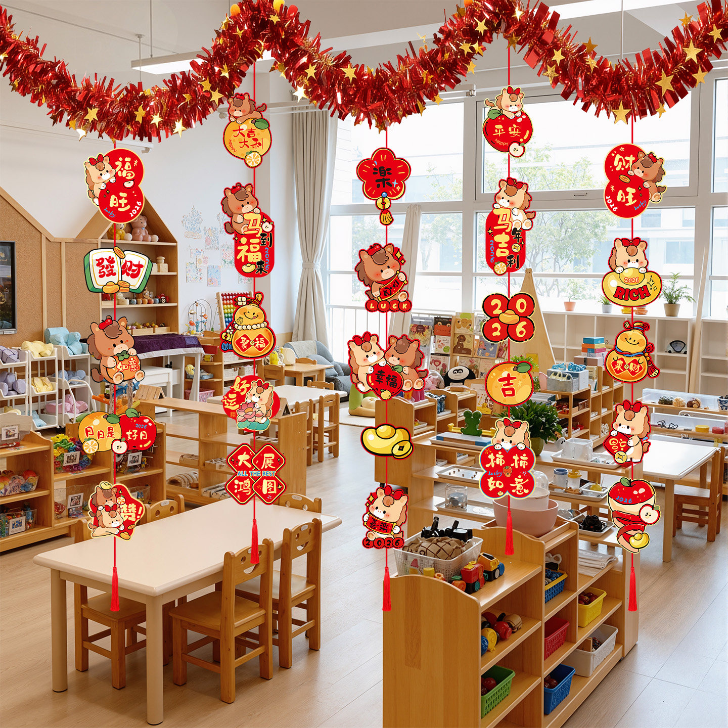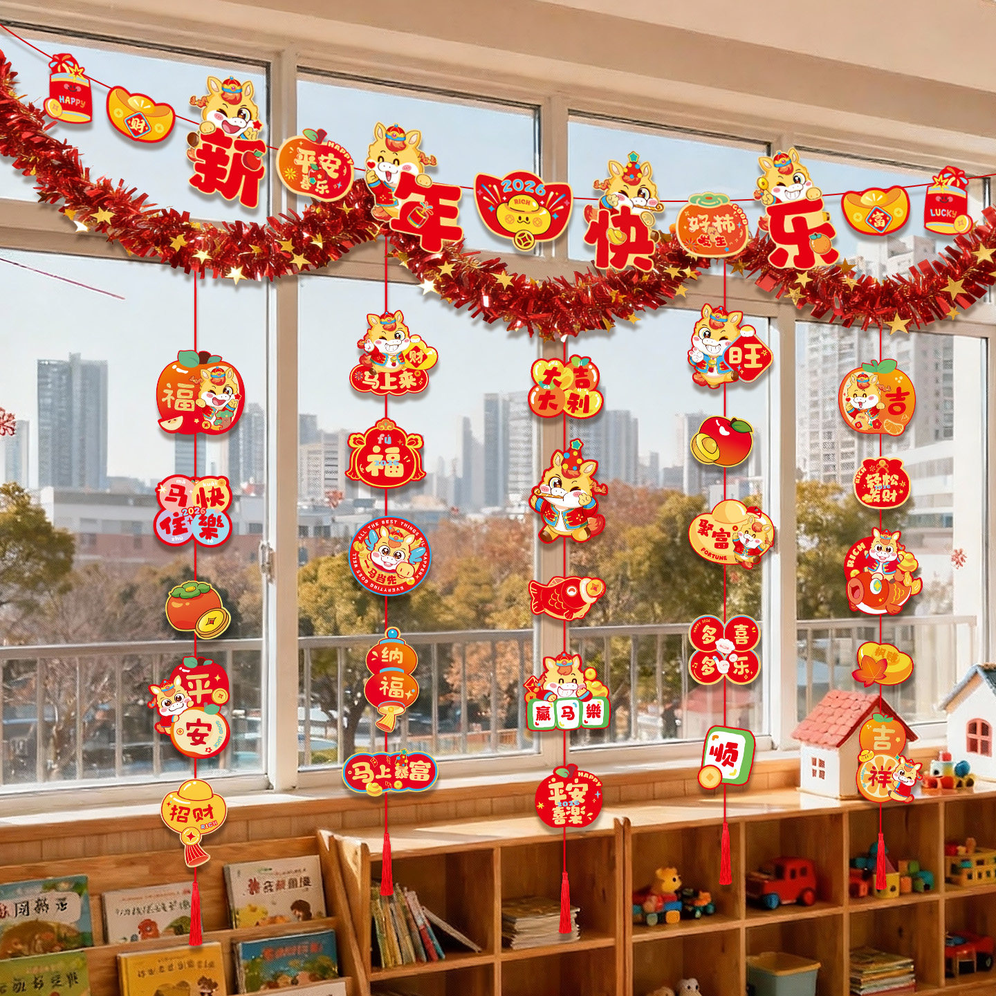 📚 2026马年新年氛围布置装饰背景墙拉旗拉花吊饰联欢会教室班级挂饰
