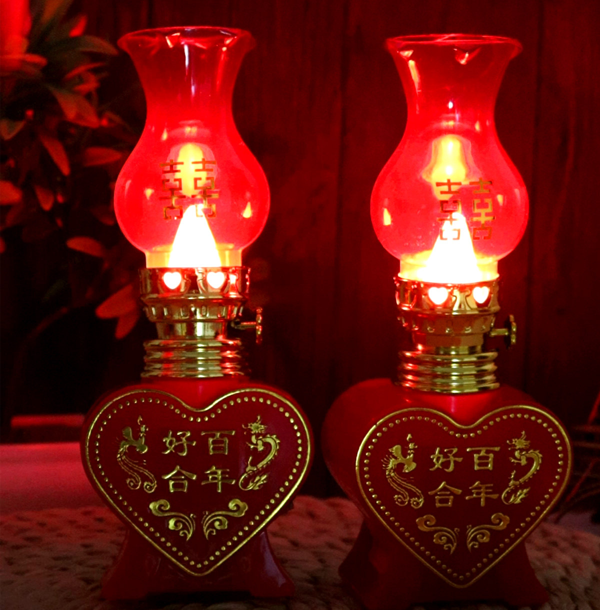 📚 LED红色卧室子孙床头长明灯桃心形新结婚房庆用品入伙一对双喜灯
