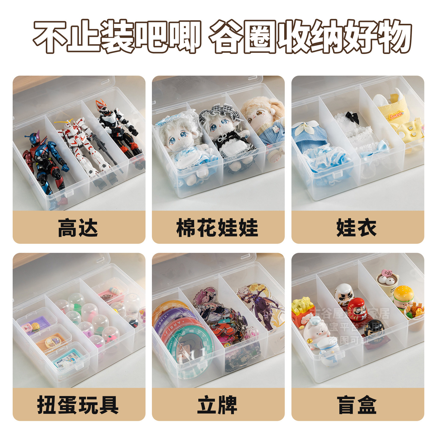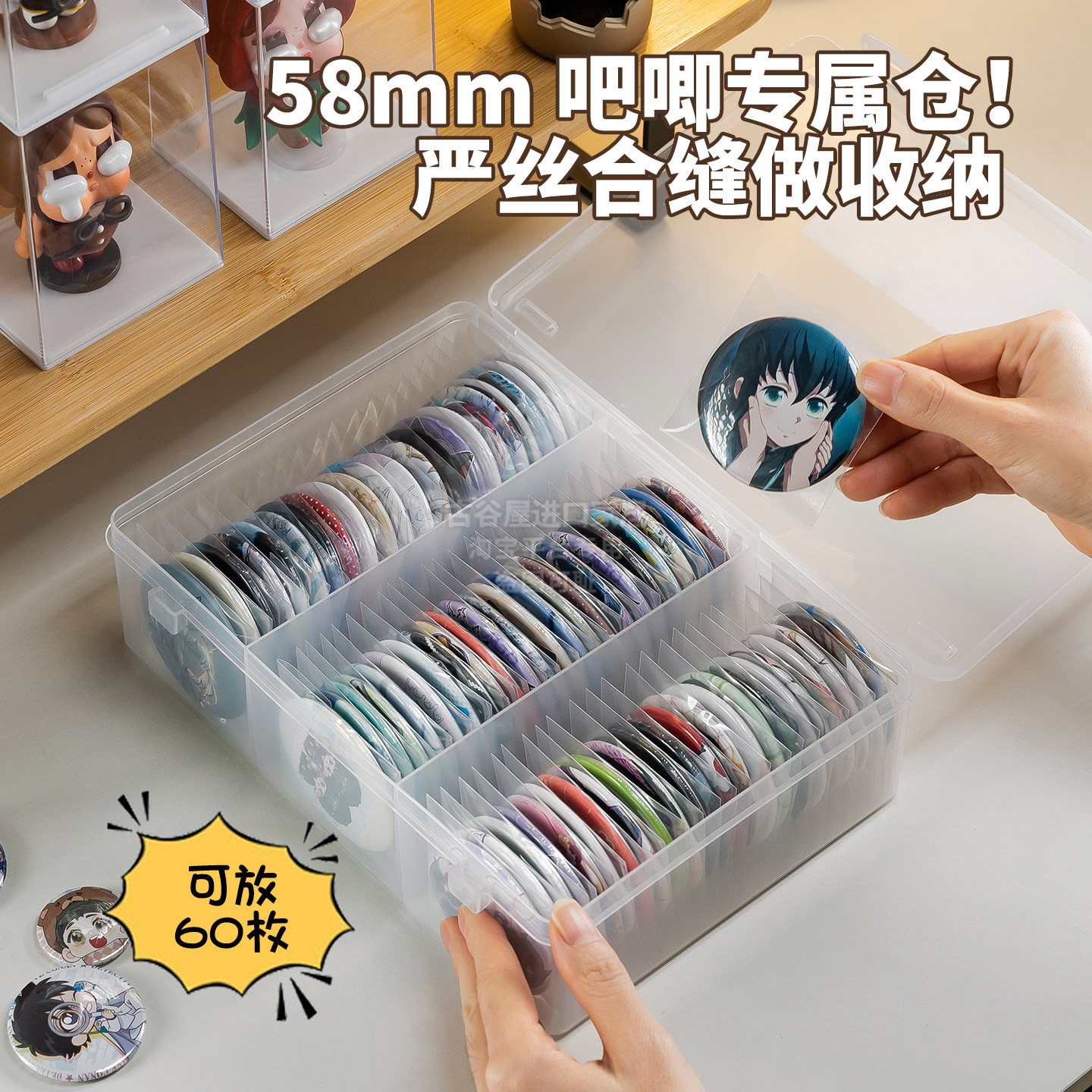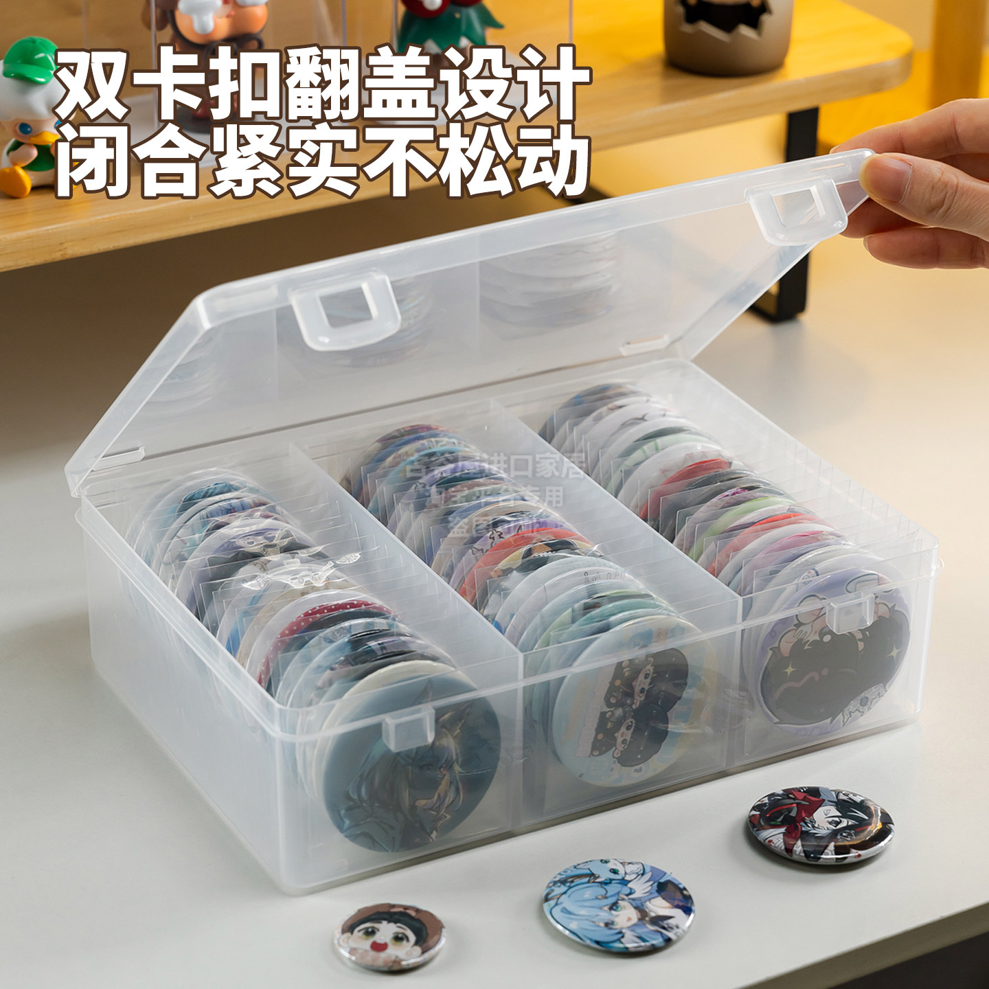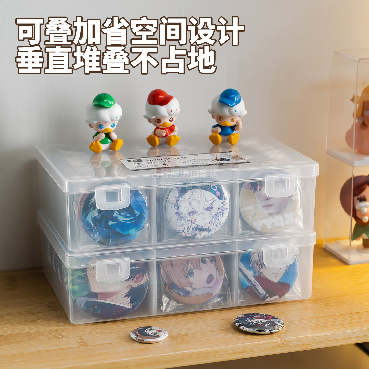 📚 日本进口吧唧收纳盒谷子徽章展示盒透明带盖桌面棉花娃娃整理防潮