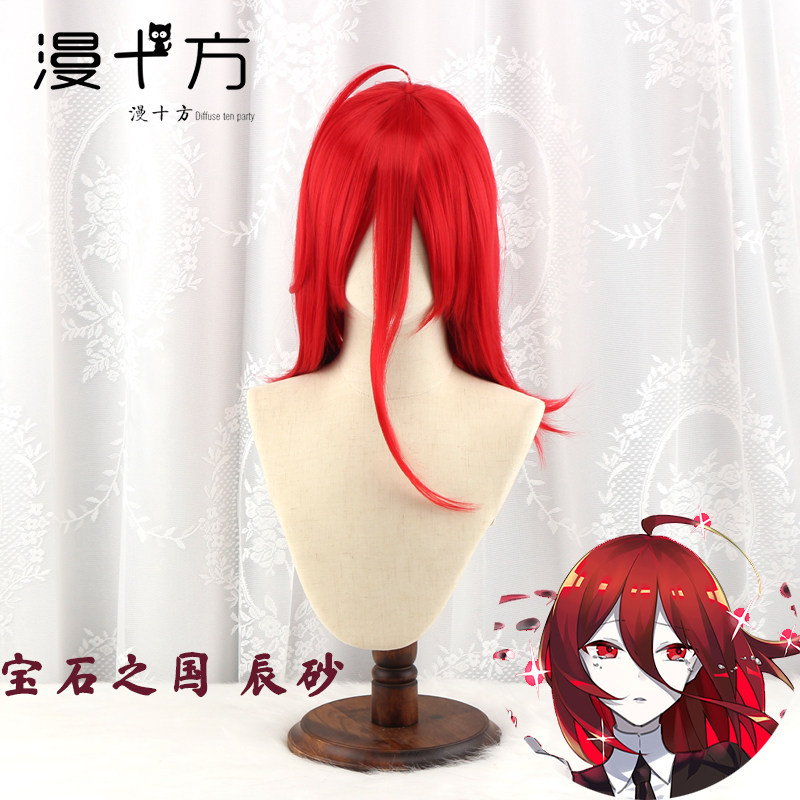 📚 漫十方 宝石之国辰砂COS假发暗红色长刘海儿加长有呆毛现货