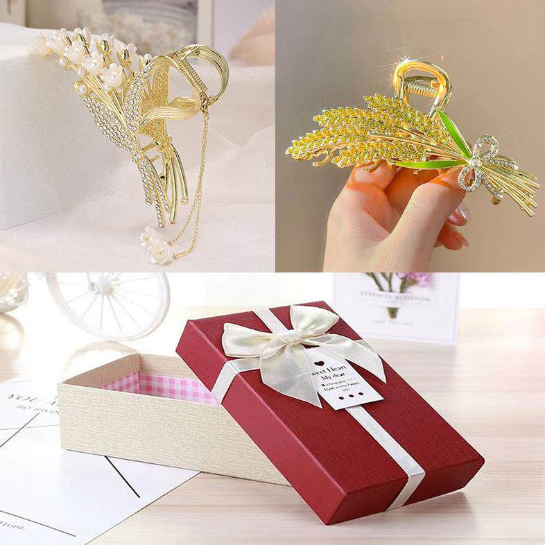 📚 黄金麦穗头发夹子优雅气质发夹2024年新款高级感后脑勺鲨鱼头饰