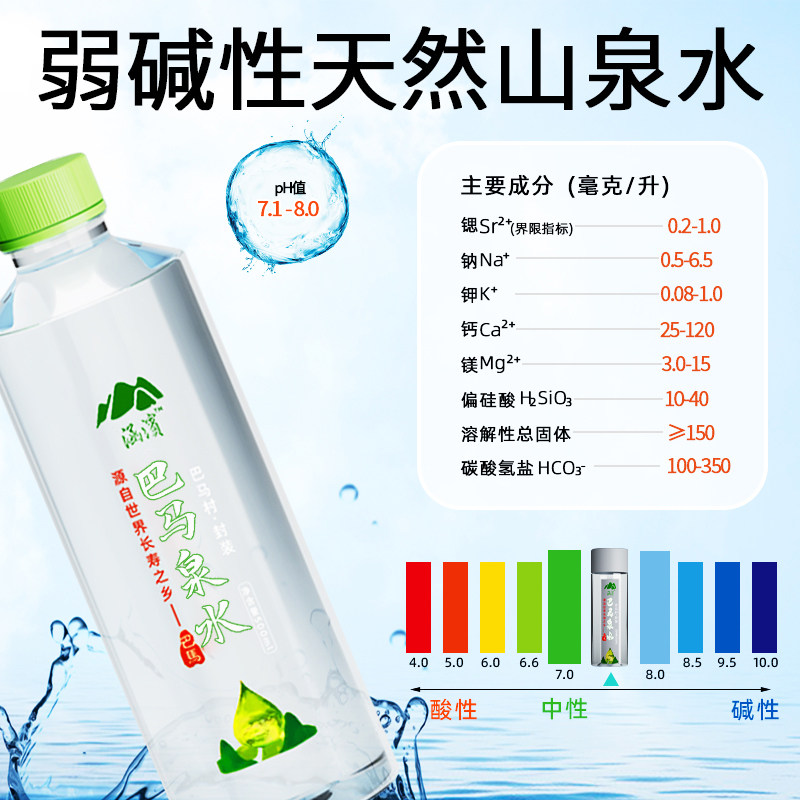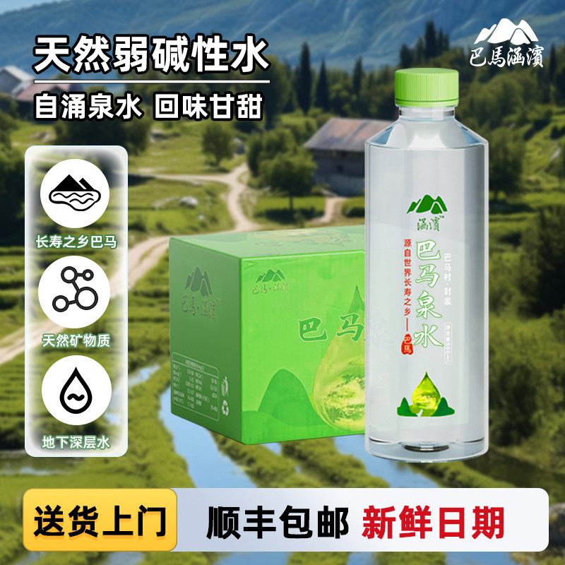 📚 巴马涵滨天然弱碱性山泉水500ml*24瓶装水富锶小分团子饮用纯净水