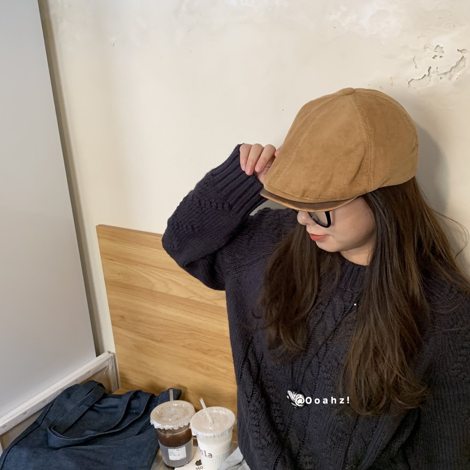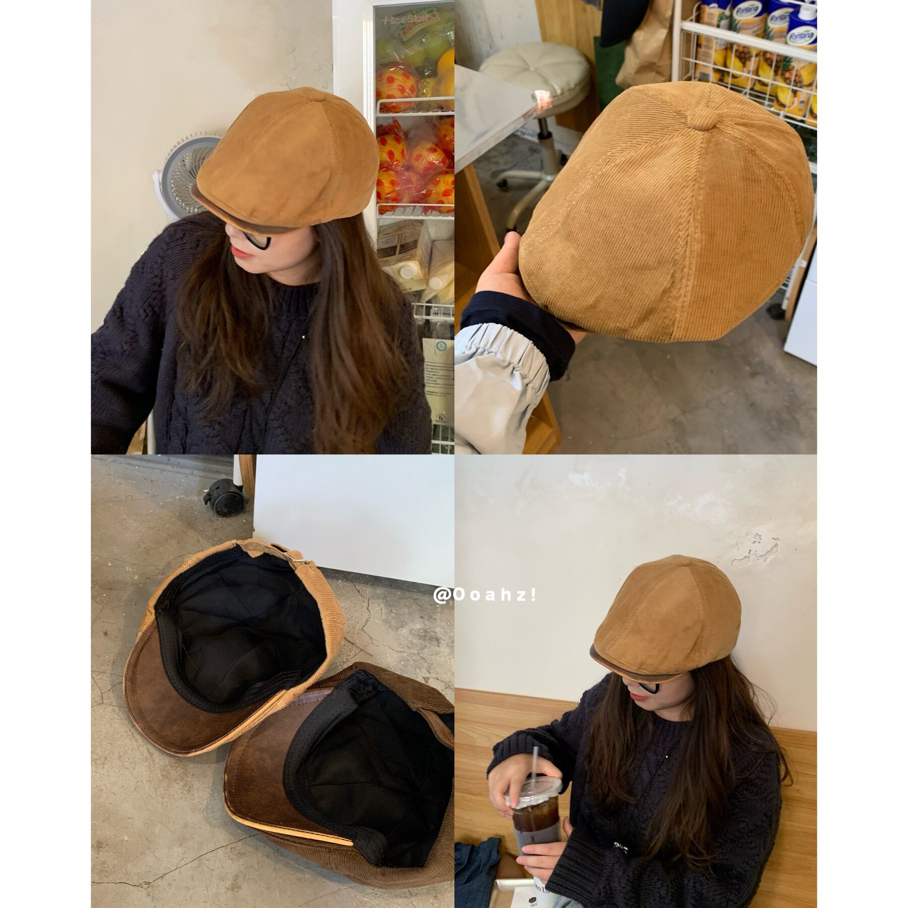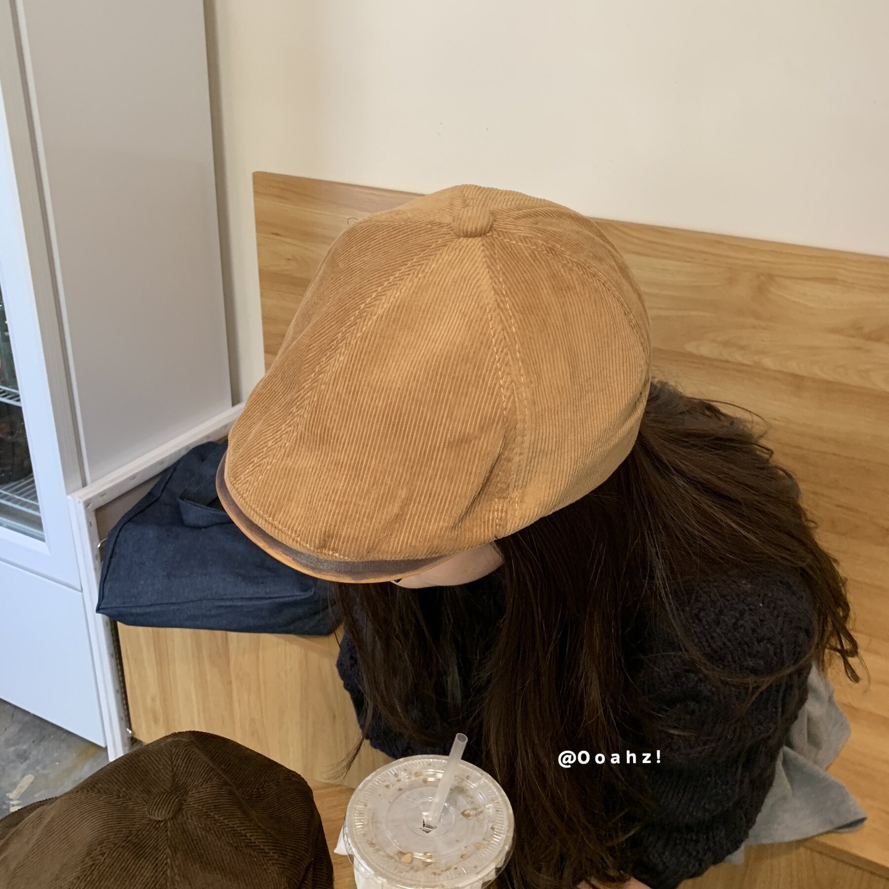 📚 过去进行时 美式复古灯芯绒前进帽子男女 韩国PU檐小众百搭贝雷帽