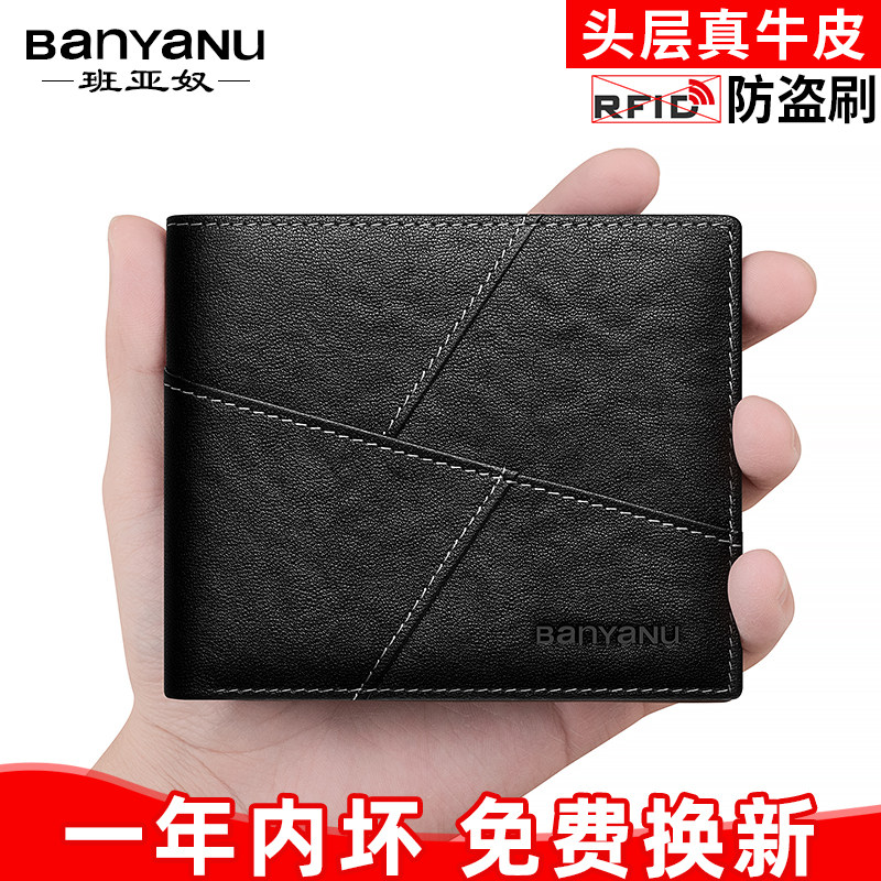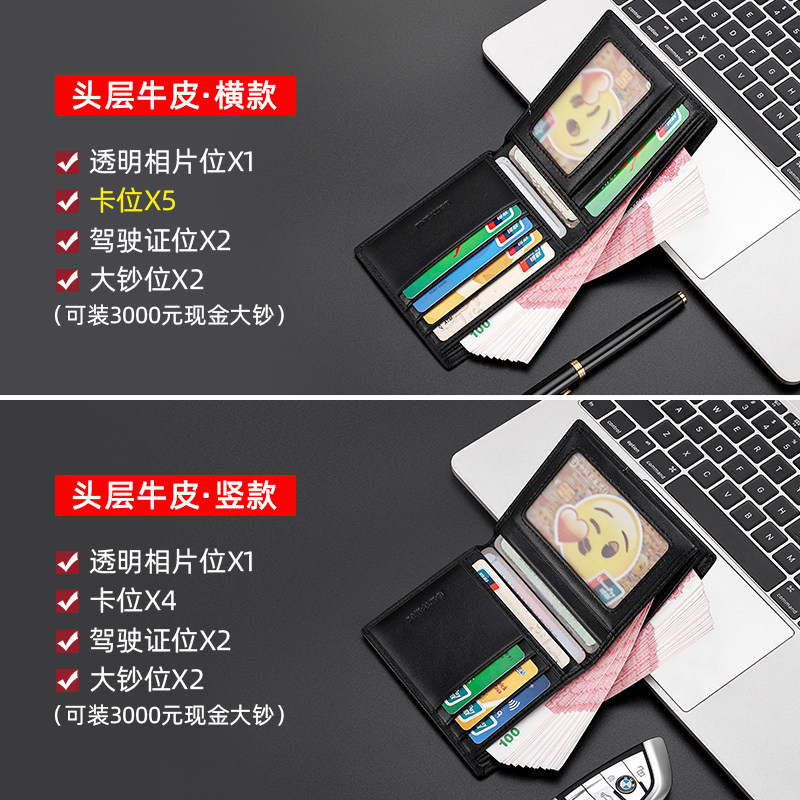 📚 2026新款头层牛皮男士钱包真皮短款简约钱夹青年皮夹卡包一体