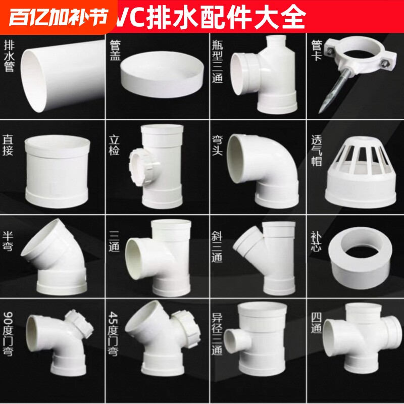 📚 PVC弯头配件50下水管75直接三通110p型存水弯异径排水缩口160管件
