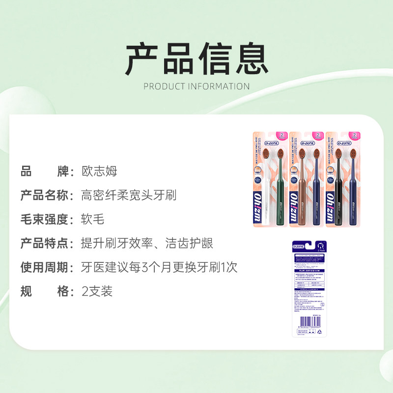 📚 欧志姆ozone高密纤柔宽头牙刷软毛宽头护龈65孔高密植毛高效清洁