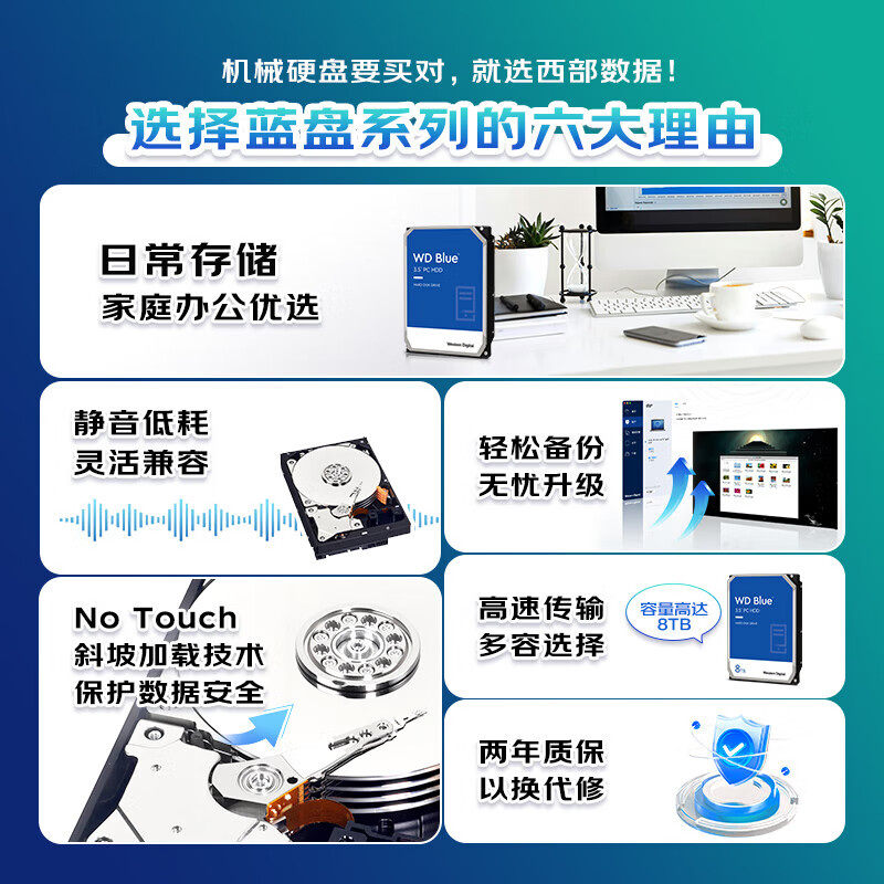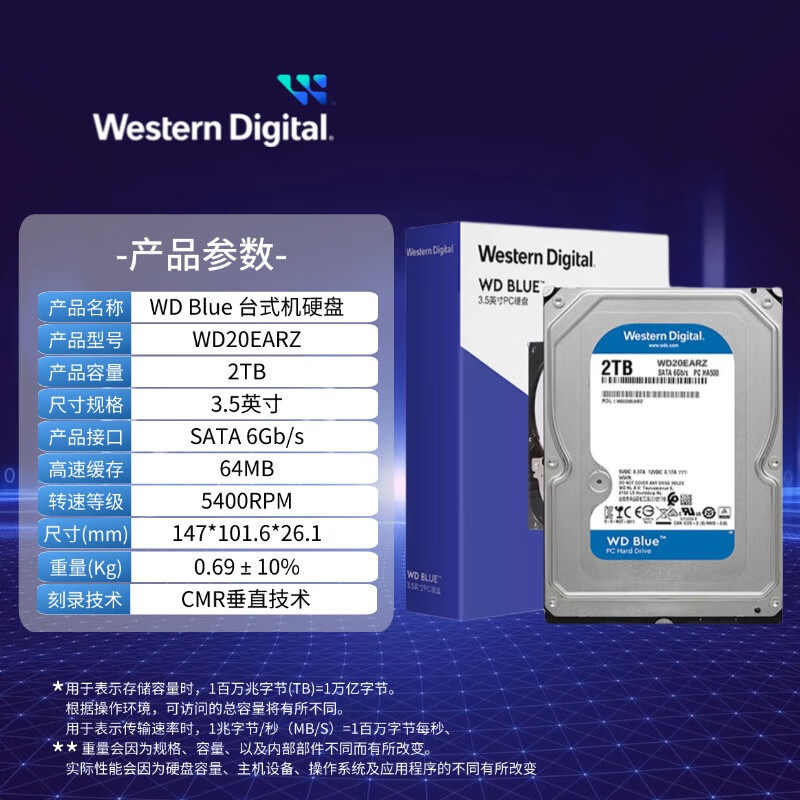 📚 西部数据机械硬盘2T WD20EARZ蓝盘2TB台式机电脑专用SATA接口垂直