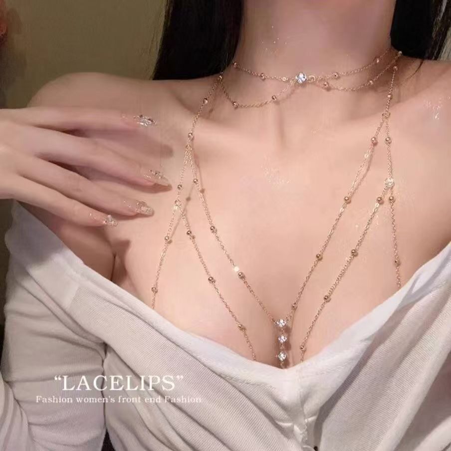 📚 钛钢不掉色~纯欲胸链身体链锁骨链性感挂链装饰项链女配饰大胸