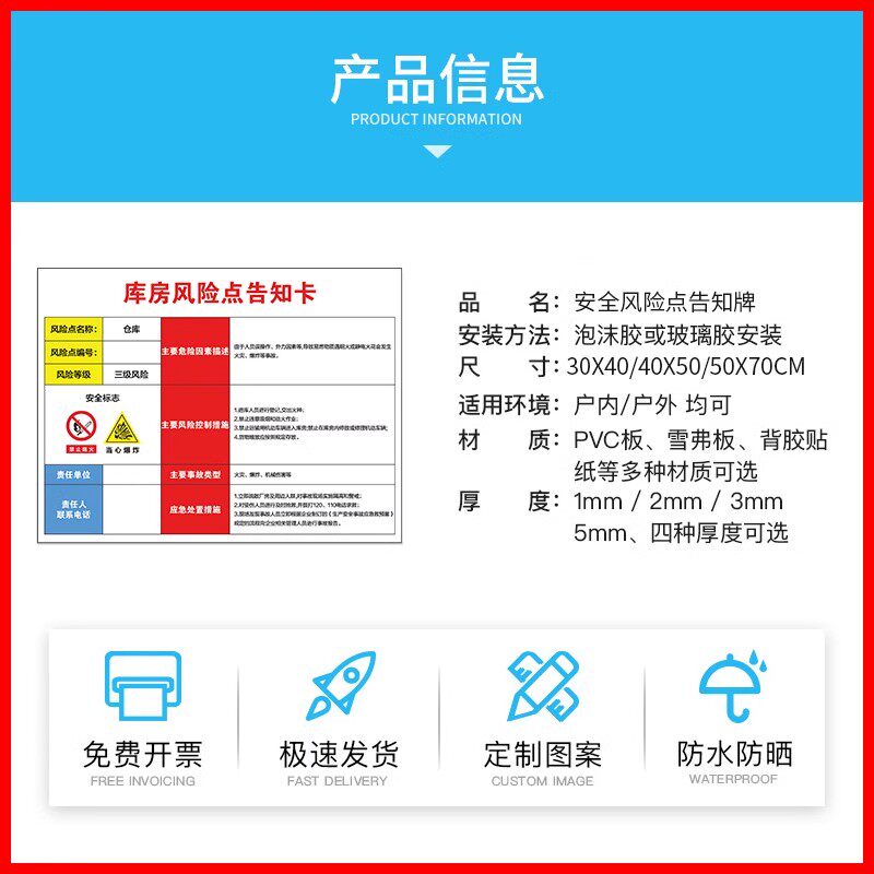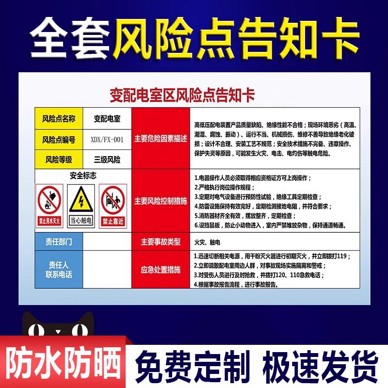 📚 安全风险点告知牌有限空间岗位风险点告知卡锅炉房配电房工厂车间仓库空压机机床行车注全套安全提示牌警示牌