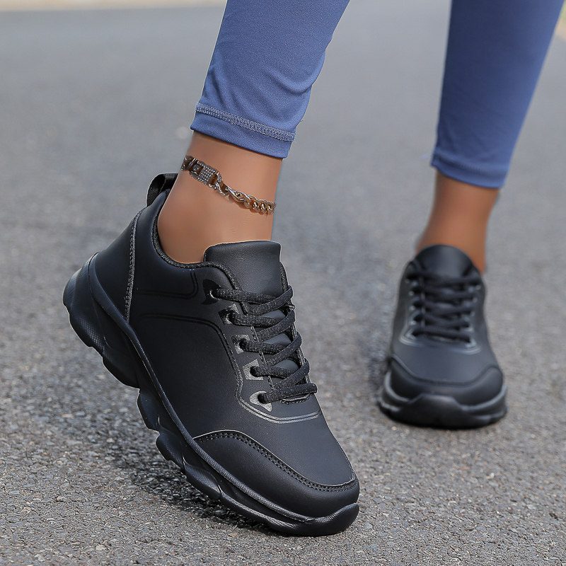 📚 全黑色跑步鞋女厨房专用防滑防水鞋女工作鞋不累脚上班软底运动鞋