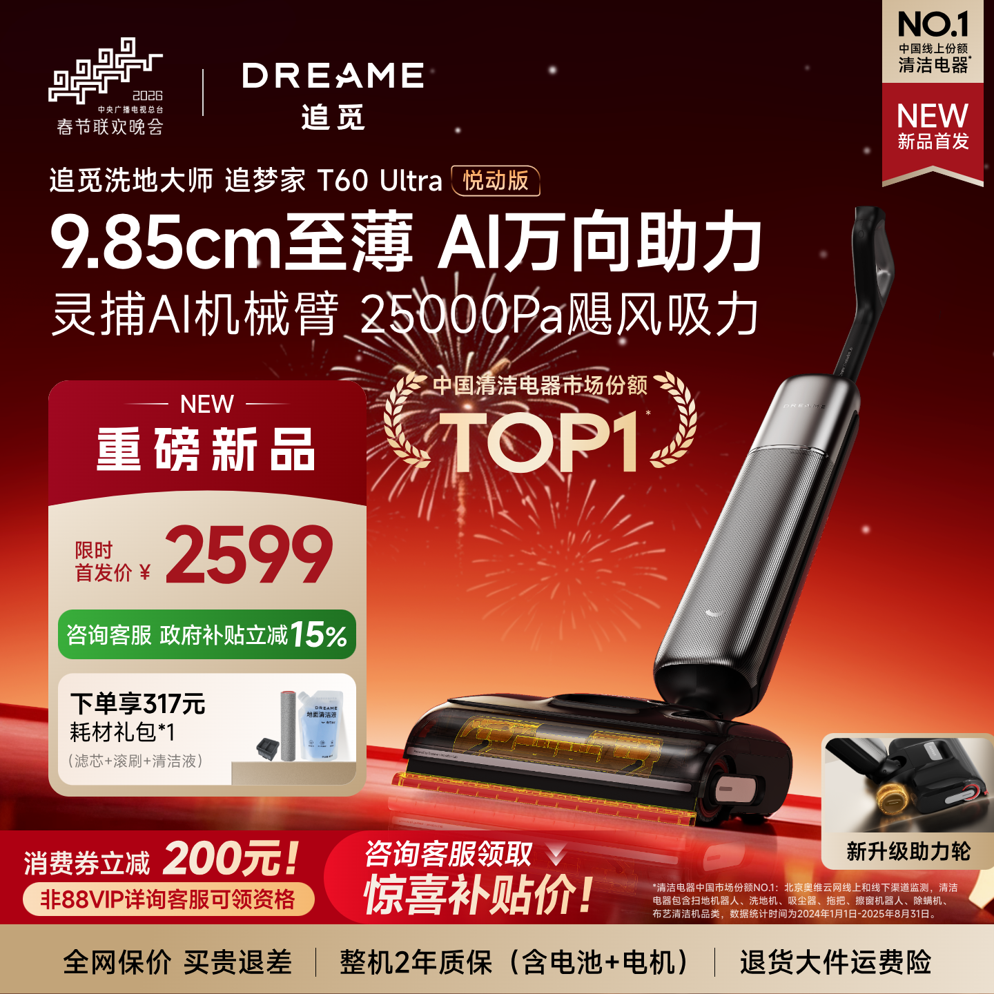 📚 【春晚同款】追觅双机械臂泡沫洗地机追梦家T60Ultra超薄0异味0缠