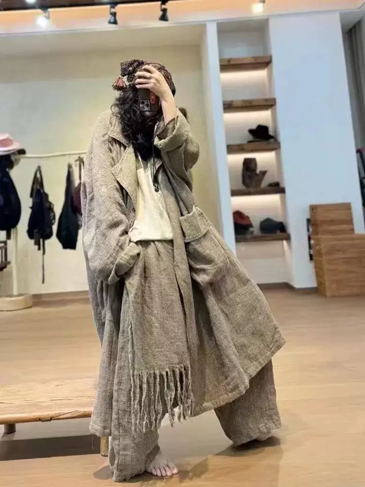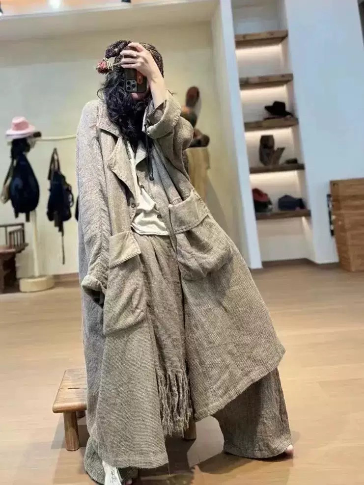 📚 沉香布衣草堂衣牧了然双层风衣2410810 粗麻双层长衣外套