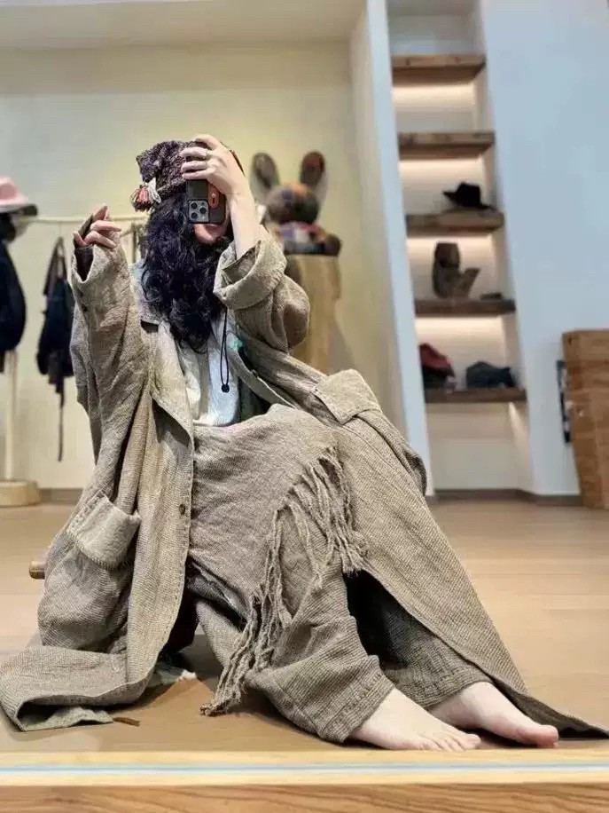 49¥ CZ193 yVlkUO8D2lk¥ https://m.tb.cn/h.7ESJ51C 沉香布衣草堂衣牧了然双层风衣2410810 粗麻双层长衣外套 --------------------- 【原售价】989元 【现售价】989元。