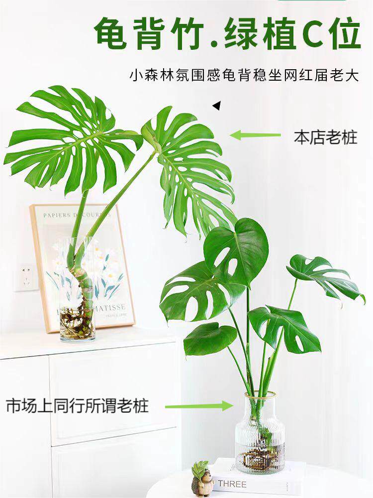 📚 水培老桩龟背竹开背开洞大叶适合新手小白观叶植物美观