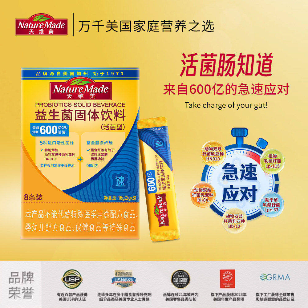 💥揭秘!NatureMade天维美600亿益生菌8条装益生元女性益生菌大人成人肠胃好物,券后价99超值!💖