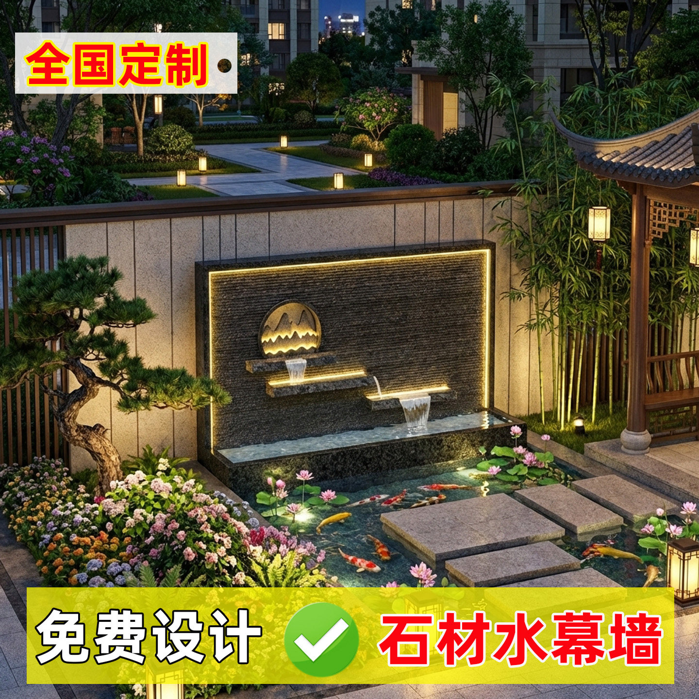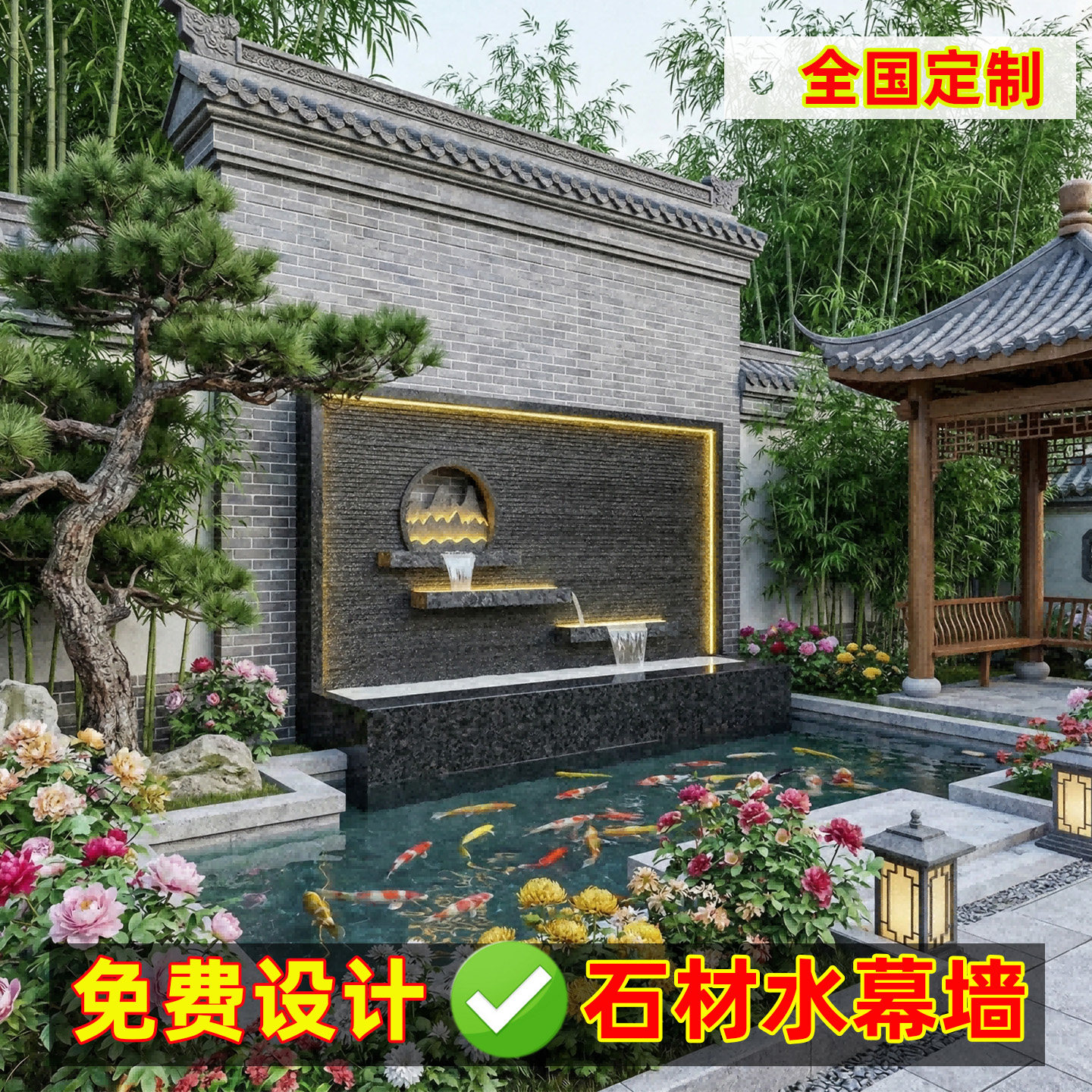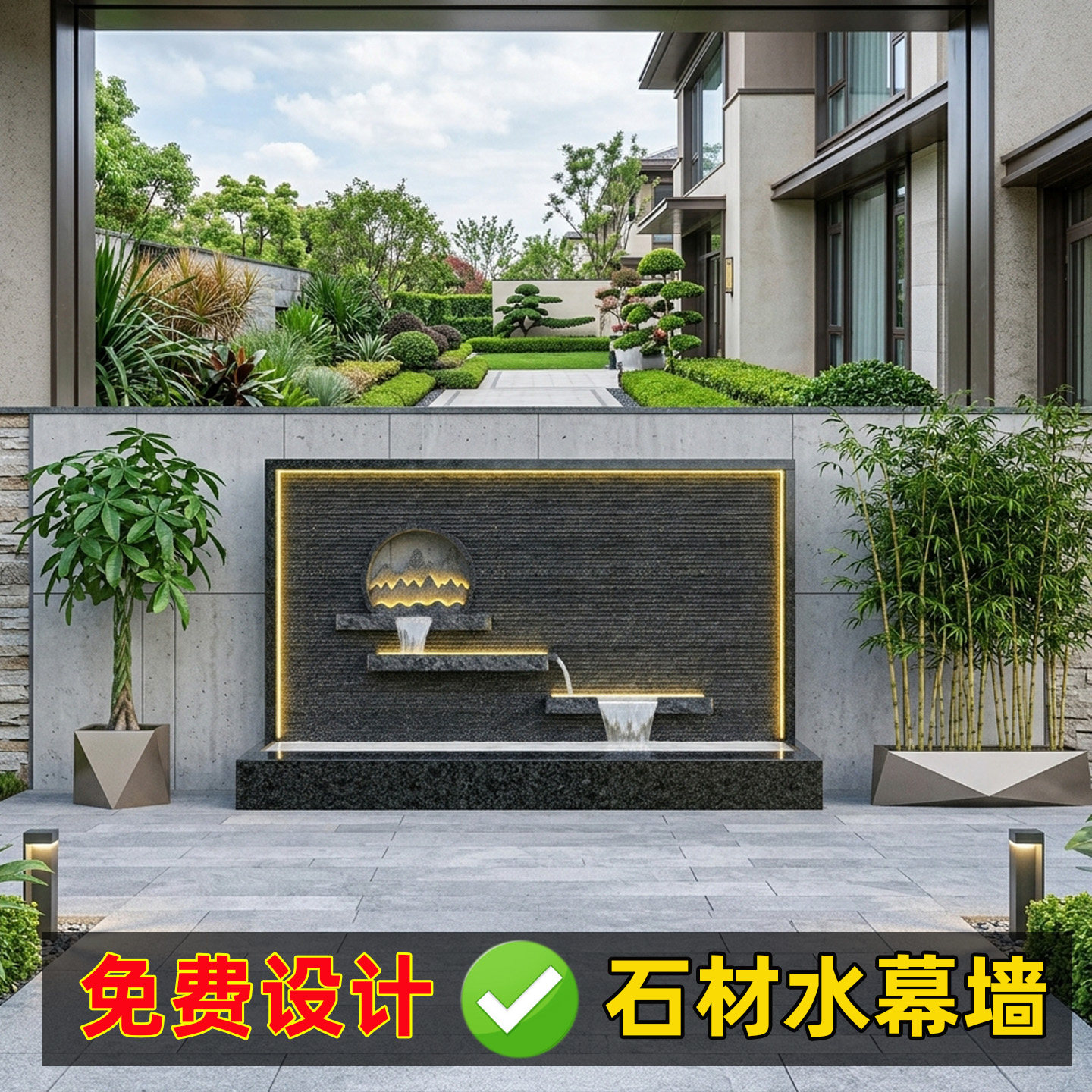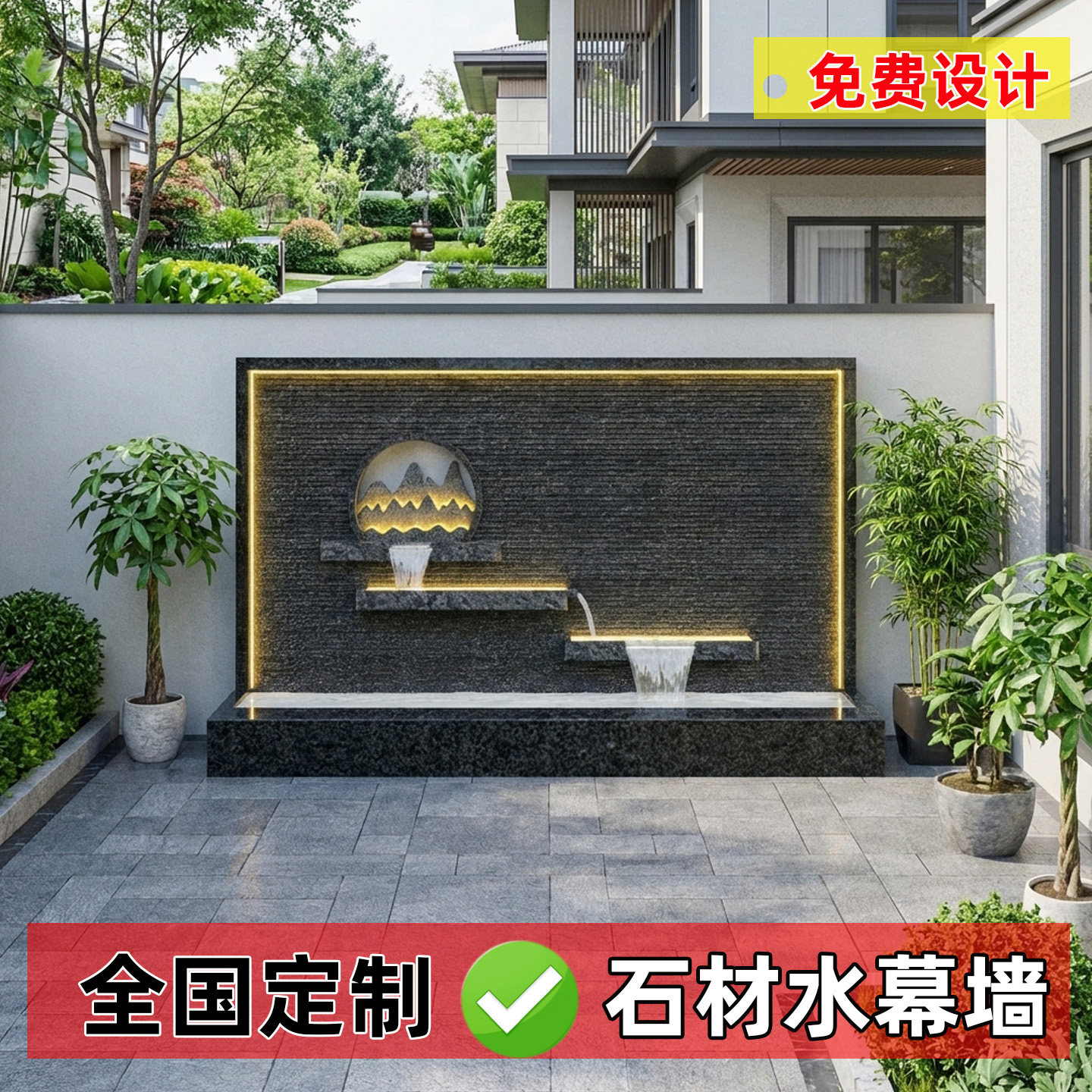 📚 【定制】别墅庭院花岗岩石材水幕墙户外循环流水花园鱼池景观摆件