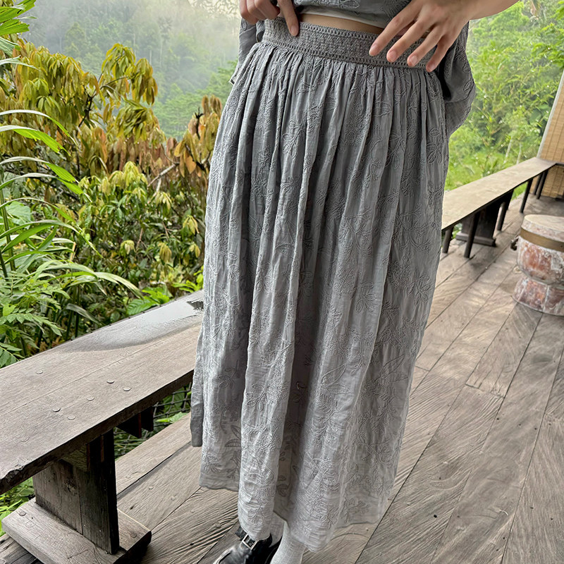 📚 NW80EN 《不合逻辑的诗》城市通勤宽松型绳绣蚕丝棉重工半裙女装