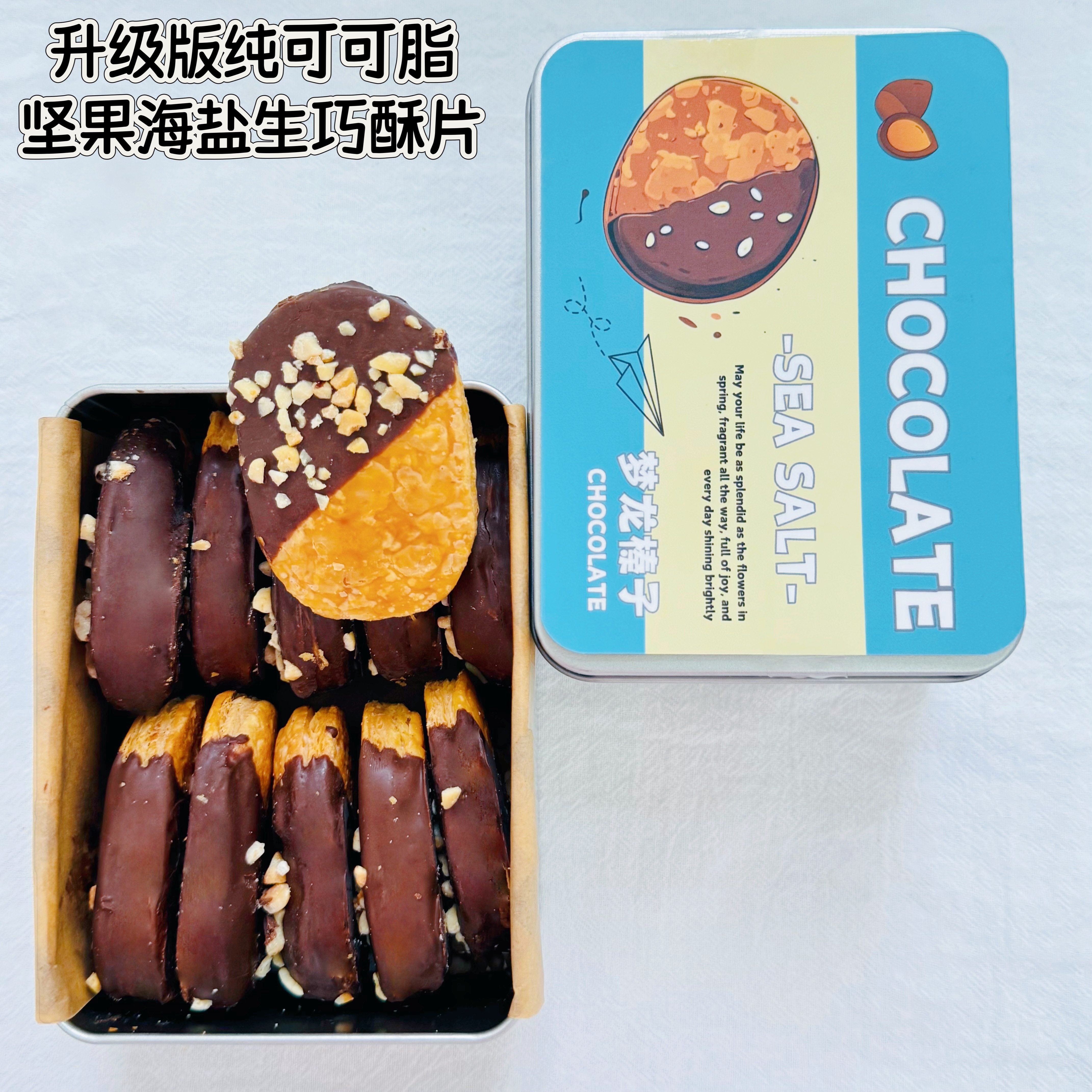 📚 升级版纯可可脂海盐生巧酥片坚果巧克力饼干宿咕的铁皮盒同款零食