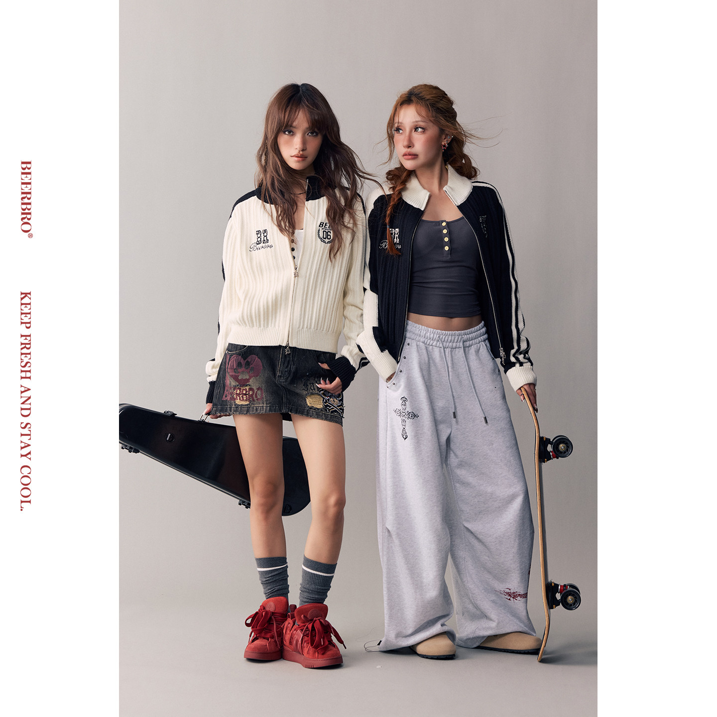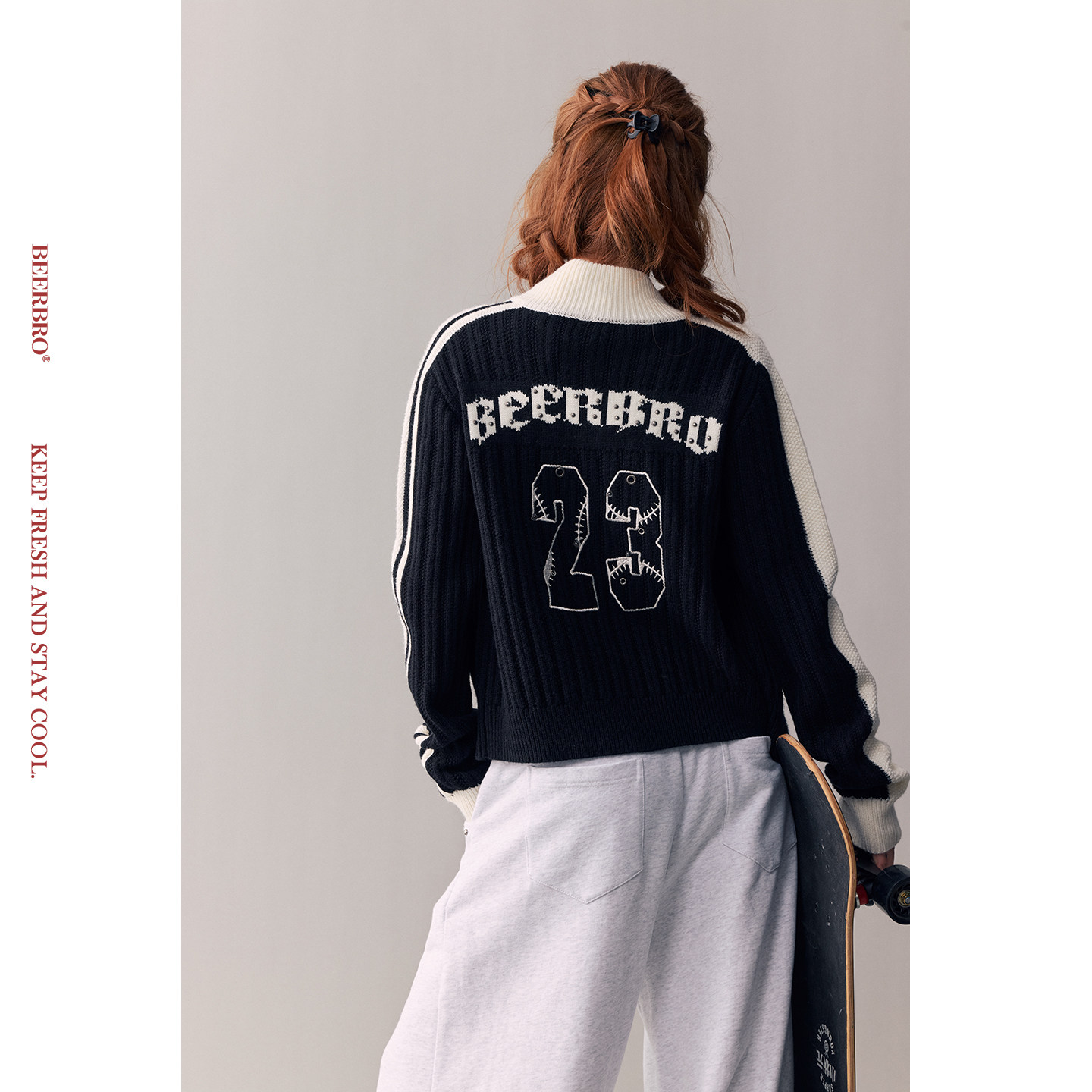 📚 BeerBro 『复古声浪』精致细腻春季绣花徽章运动撞色毛衣开衫外套