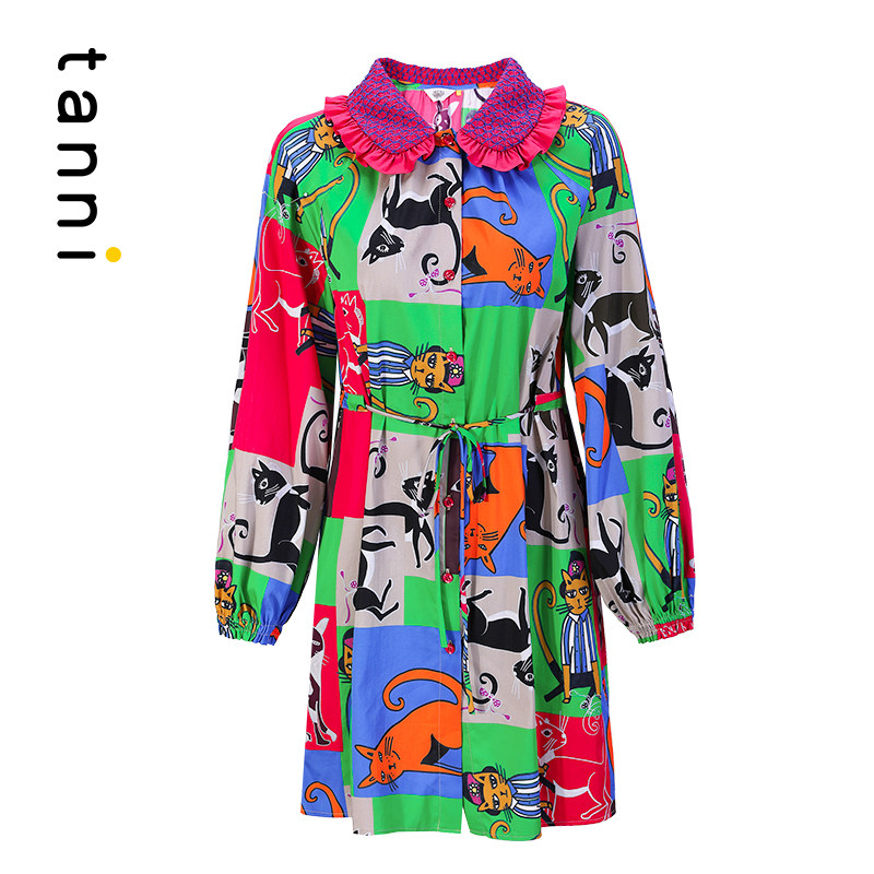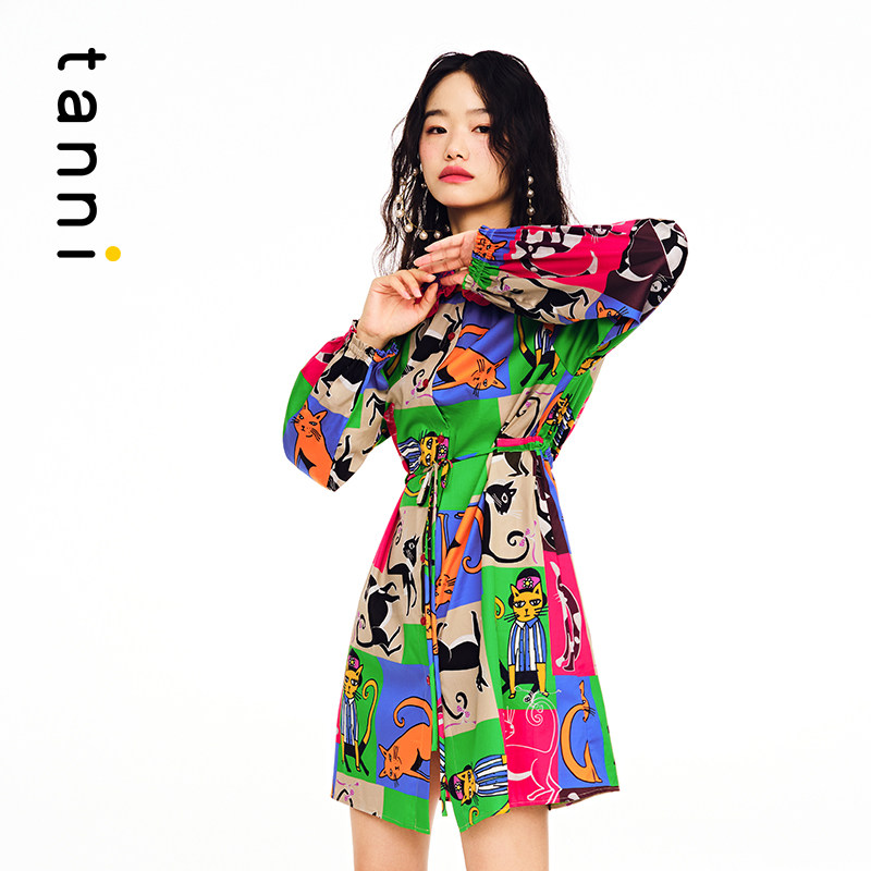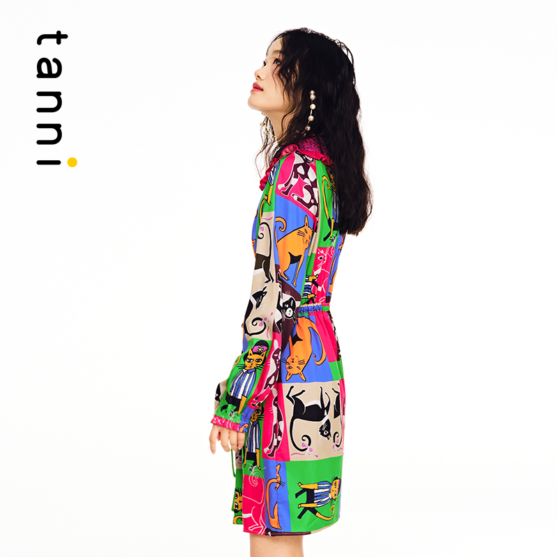📚 tanni商场同款动物印花娃娃领简约显瘦百搭小A版连衣裙TL11DR004A