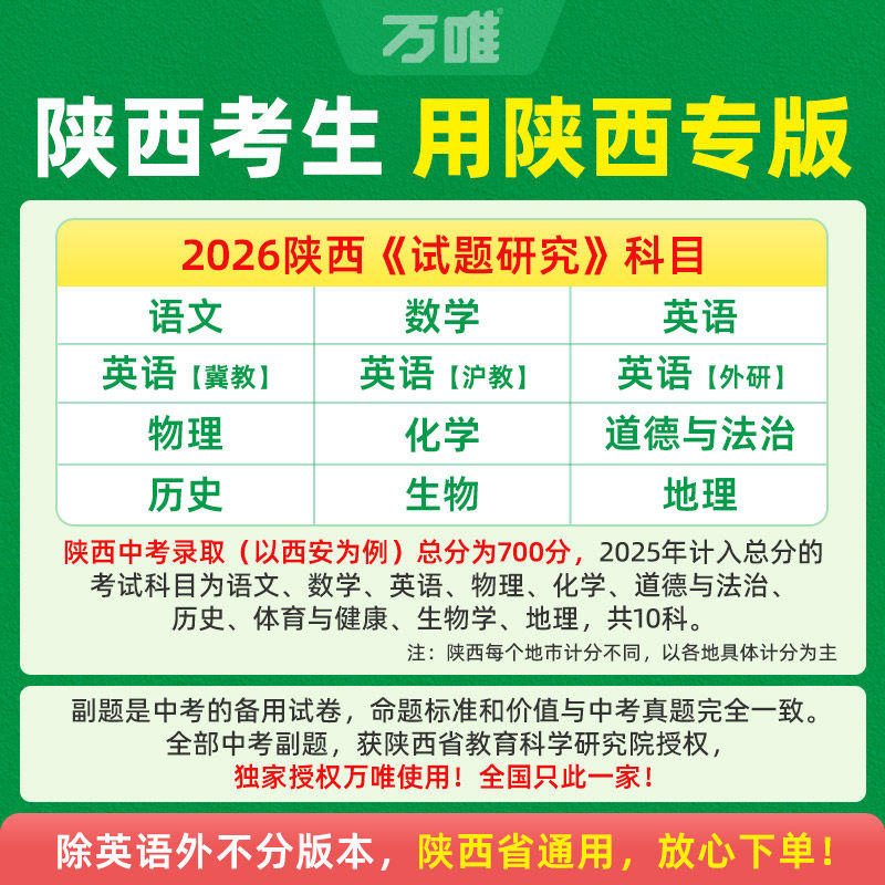 📚 2026陕西万唯中考试题研究语文数学英语物化道历生地套装中考总复习复习资料七八九年级辅导书真题初三刷题万维教育旗舰店