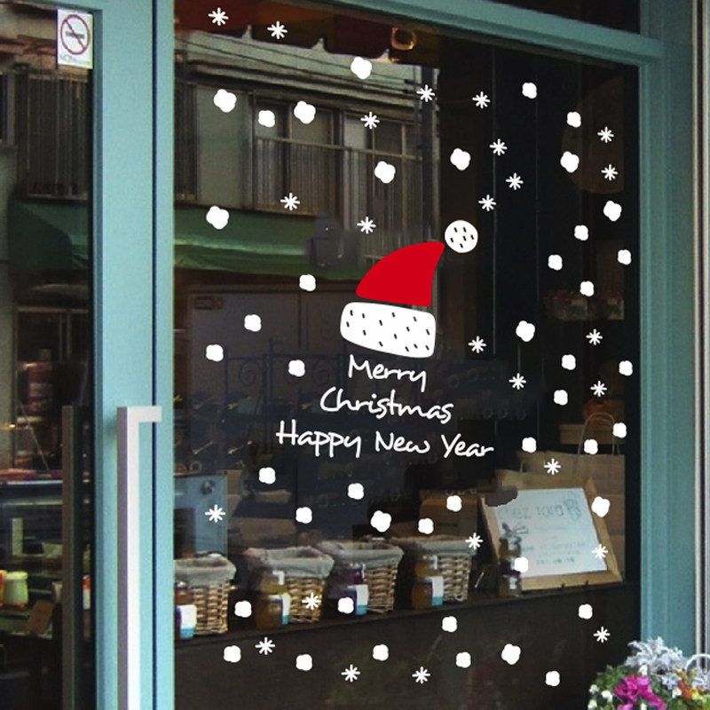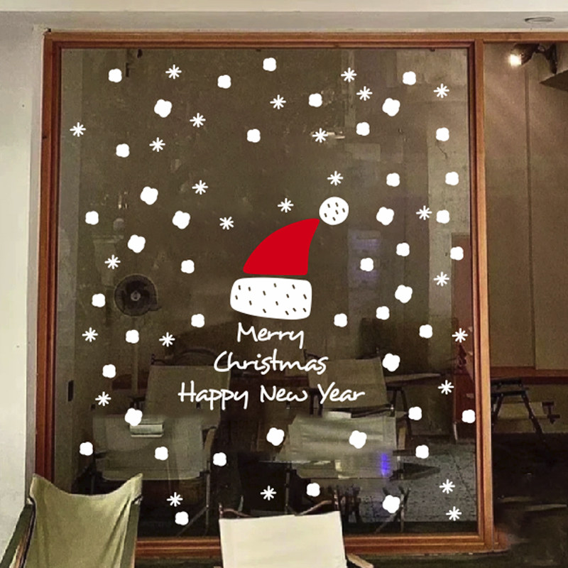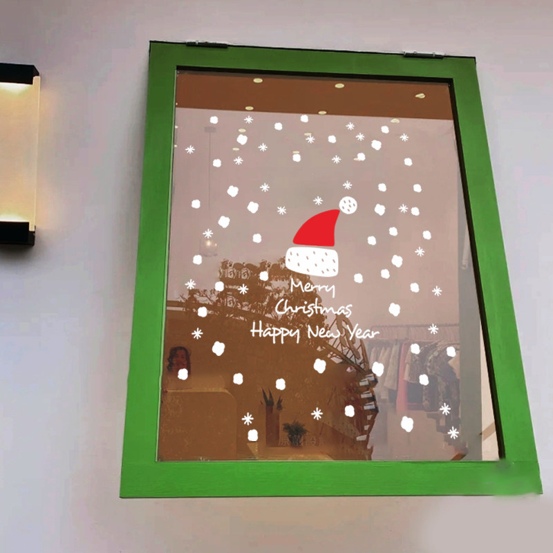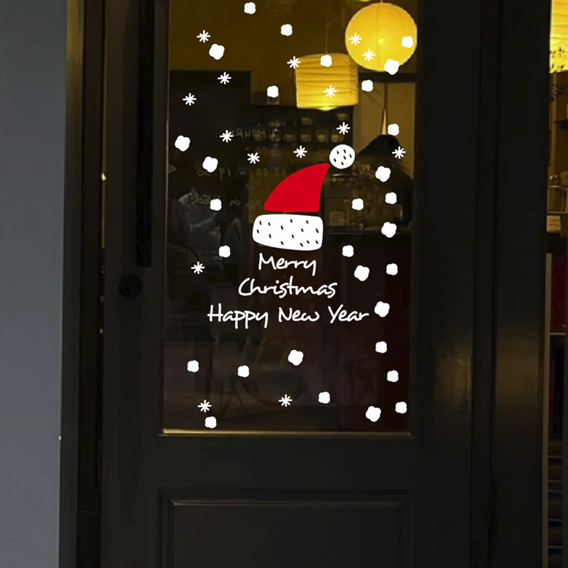 📚 耶诞帽节奶茶店饭厅磨砂橱窗墙贴新年玻璃门贴雪花装饰品自黏贴画