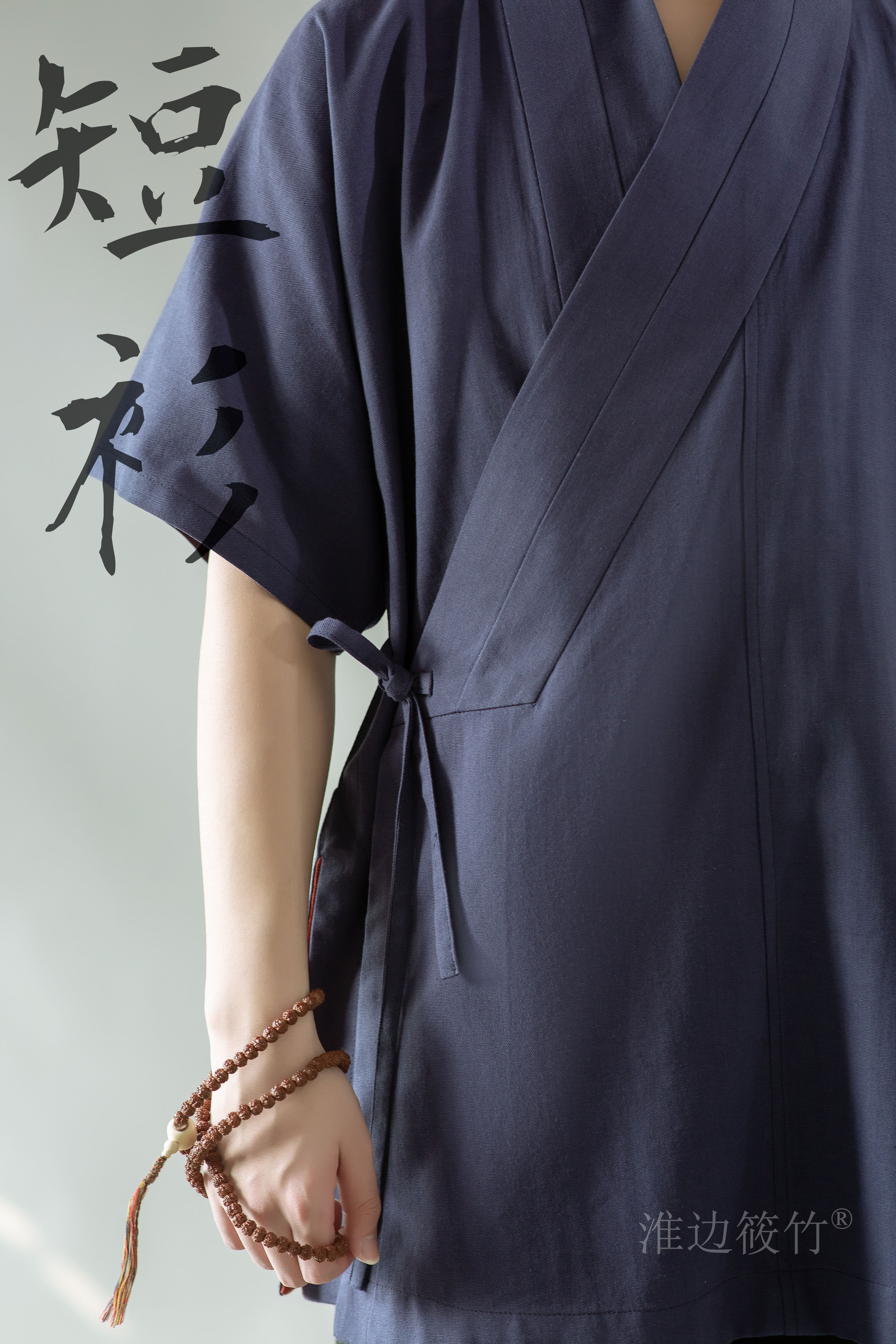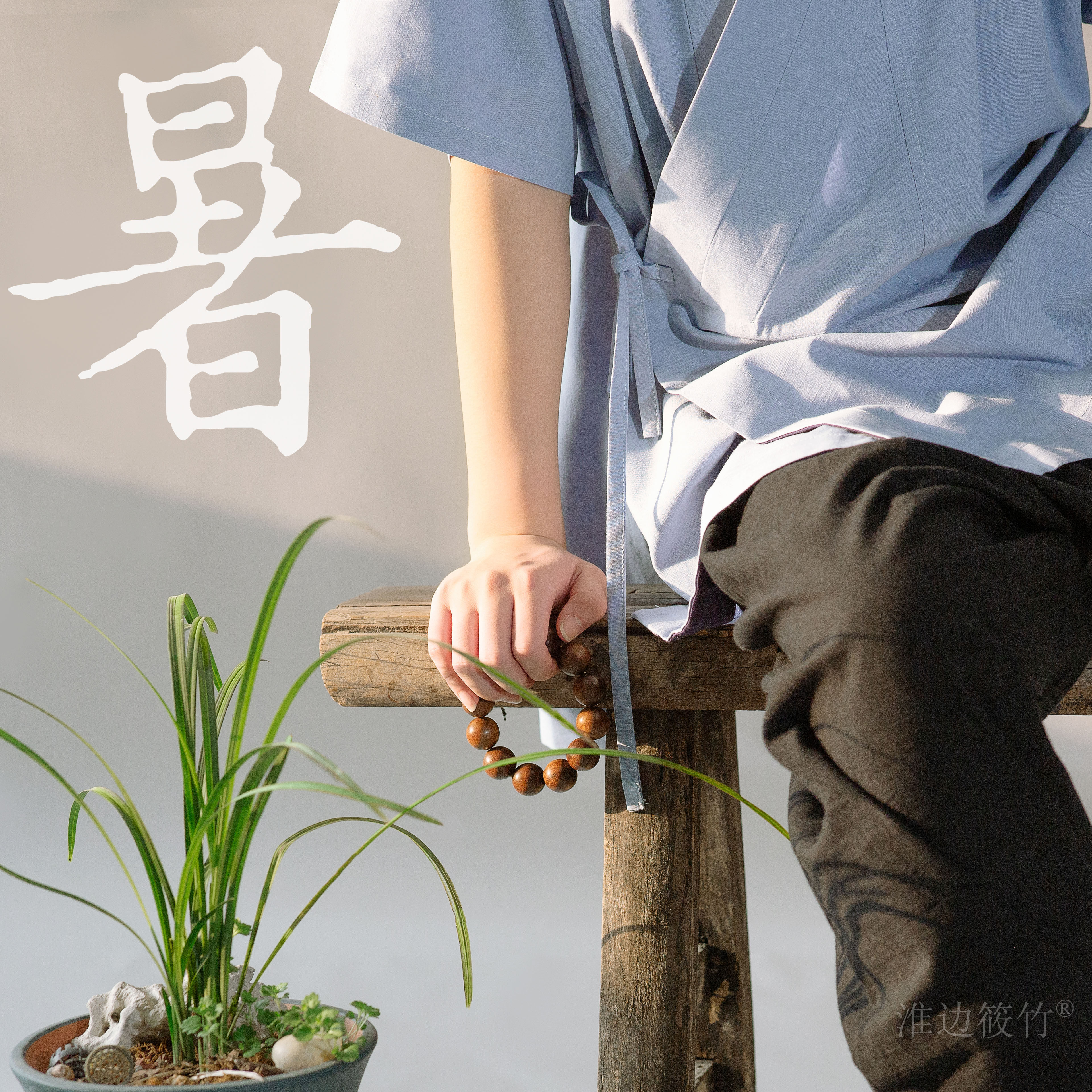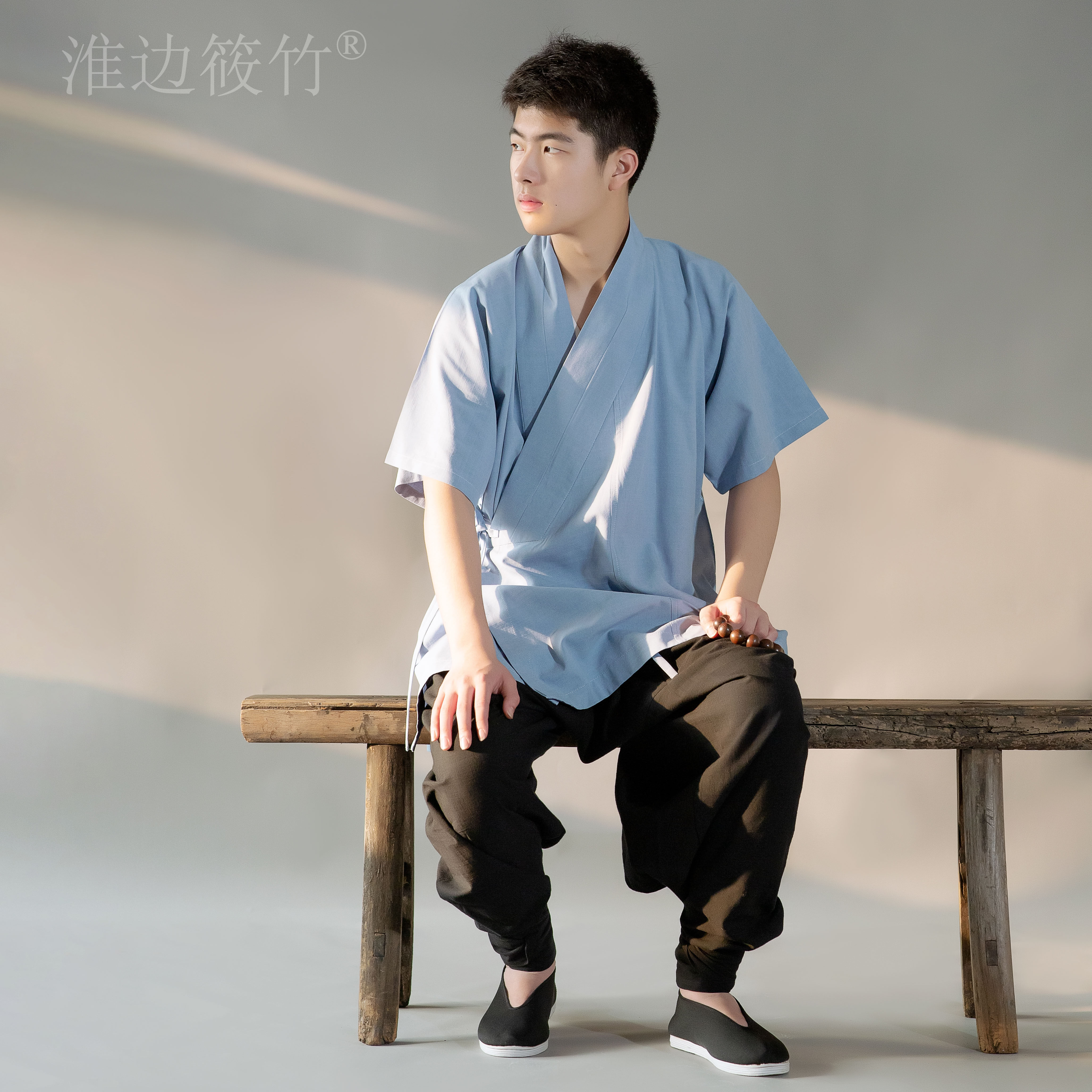 📚 淮边筱竹 交领汉服短袖半臂 家居夏装短打汉元素明制夏季道袍男款