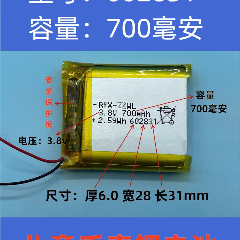 📚 602831儿童智能电话手表聚合物锂电池3.8V大容量可充电