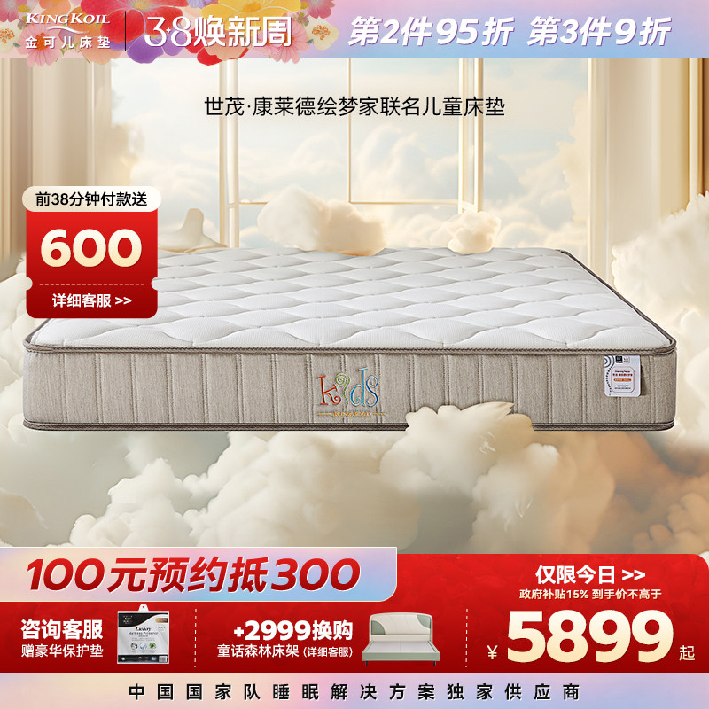 📚 金可儿儿童床垫偏硬单人弹簧单面护脊乳胶床垫世茂康莱德绘梦家