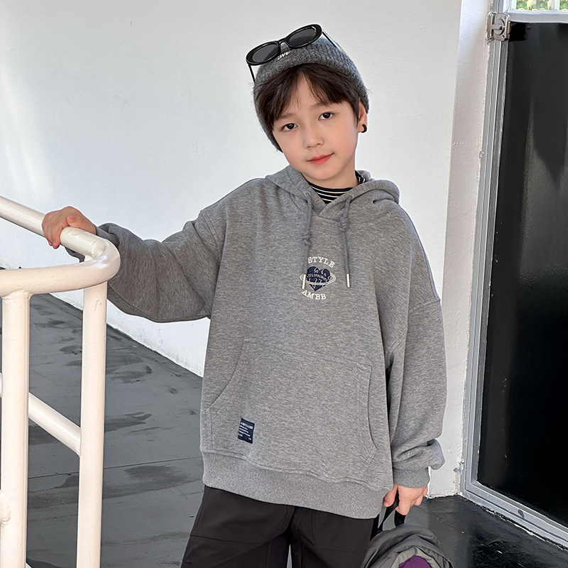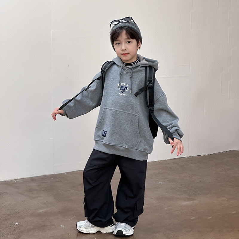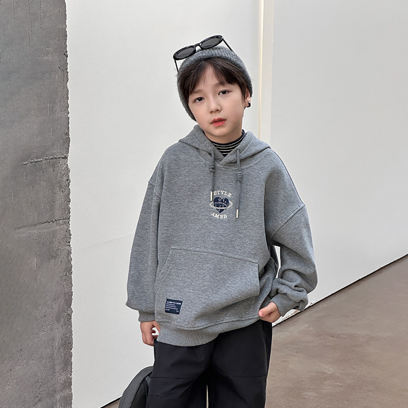 📚 依依妈男童加绒连帽卫衣儿童冬装宝宝宽松休闲字母爱心打底上衣潮