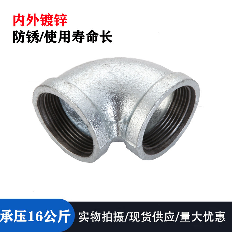 📚 镀锌玛钢90度弯头 铸铁丝扣内丝弯头 内螺纹 消防管管件4分6分1寸