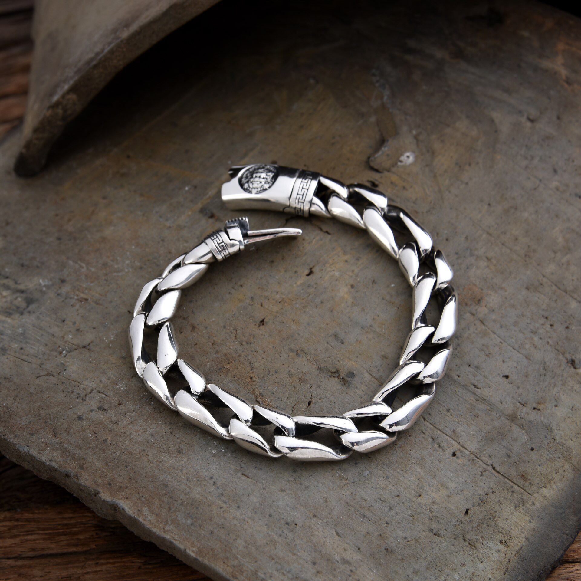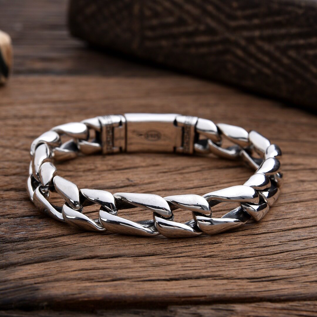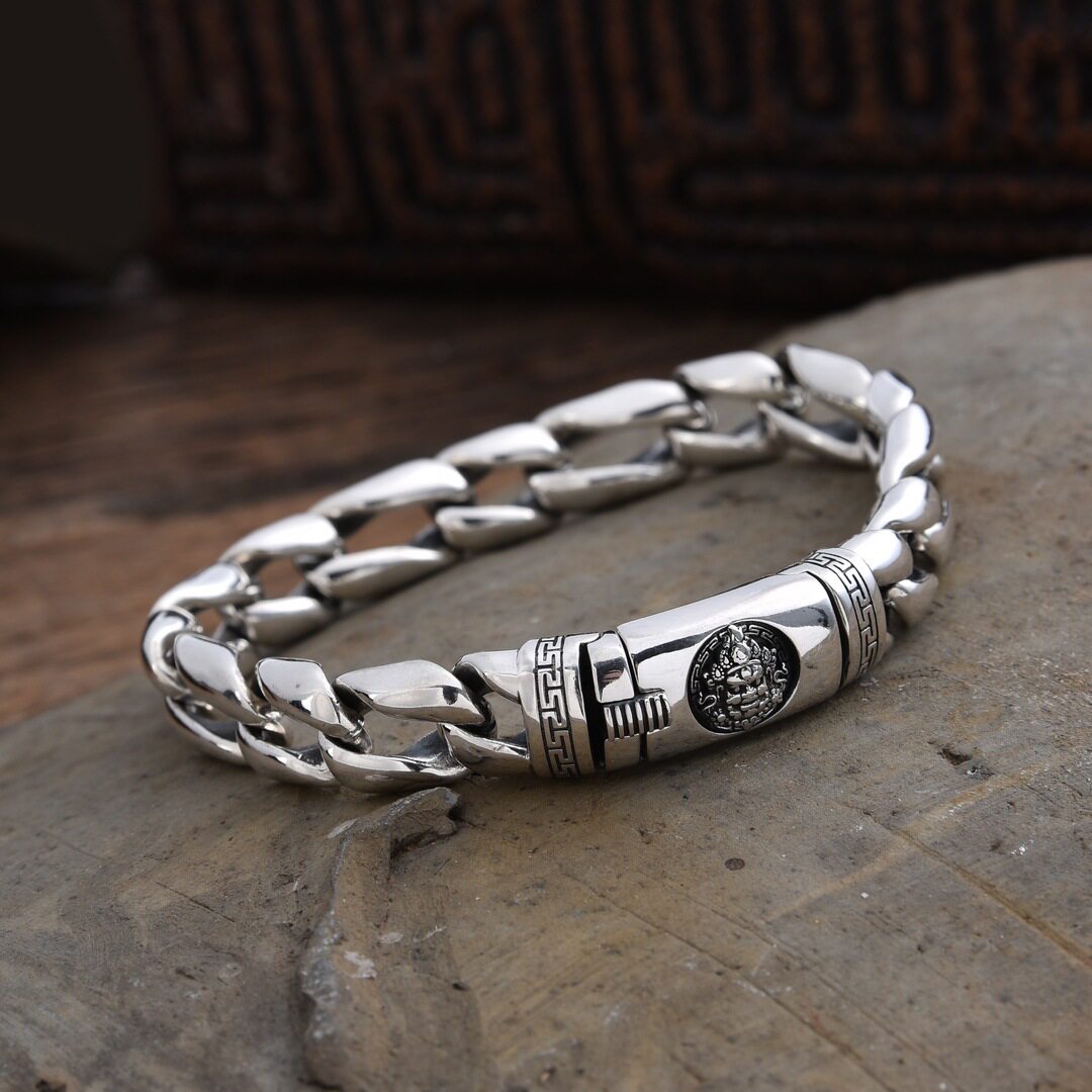 📚 新品原创黄财神手链纯个性男士国潮风光面古巴链重工粗手链
