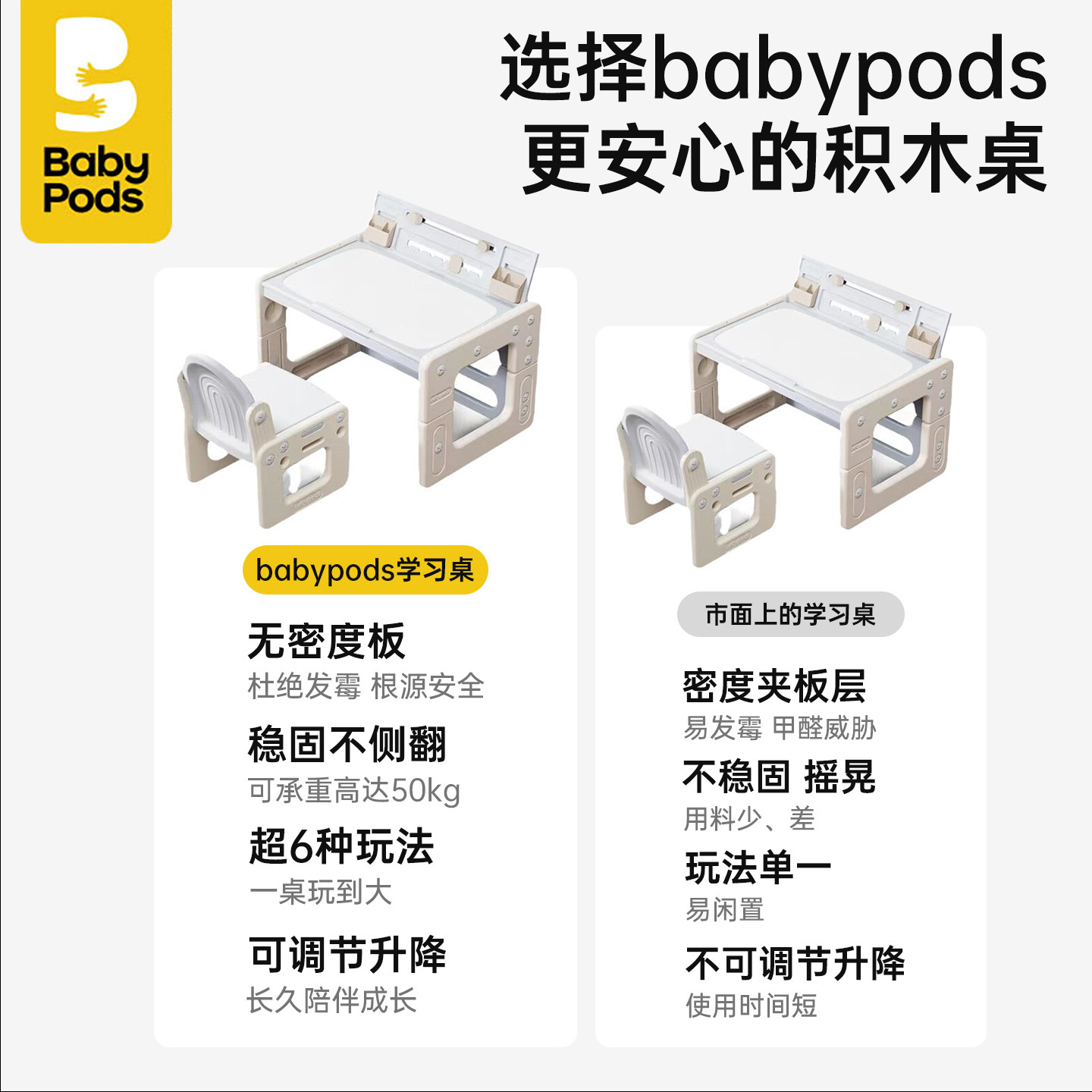 📚 babypods儿童积木桌椅多功能学习桌子玩具写字桌绘画幼儿园早教桌