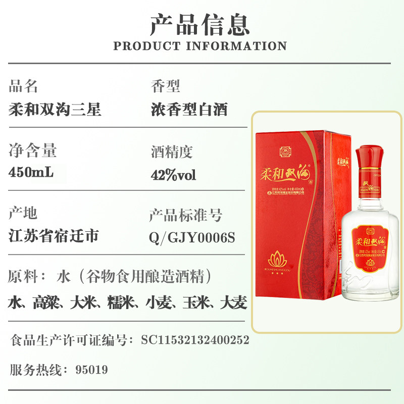 📚 双沟柔和双沟42度450mL*6瓶浓香型白酒整箱装