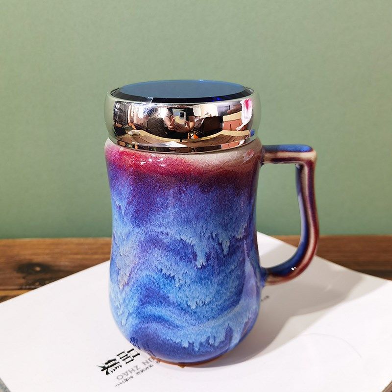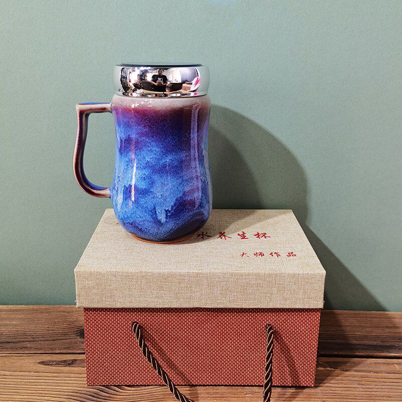 📚 禹州神垕a钧瓷茶杯办公杯男女士陶瓷窑变釉水杯带盖高档大容量杯