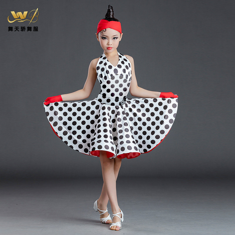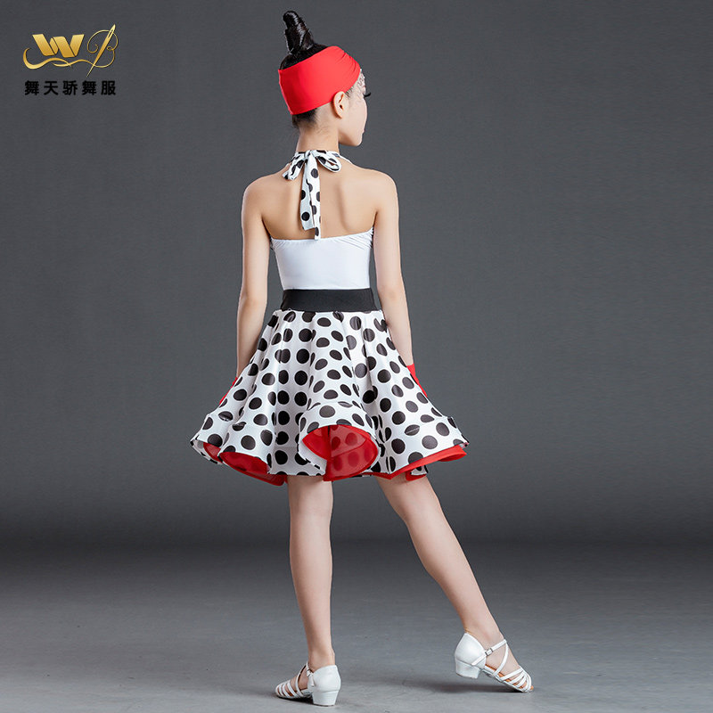 📚 儿童拉丁舞服女童波点表演服专业练功服网红套装舞蹈演出服大裙摆