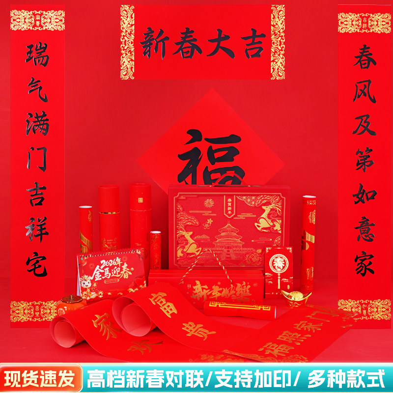 📚 2026马年新款广告对联定制春联礼盒装丝绸植绒烫金对联大礼包定做