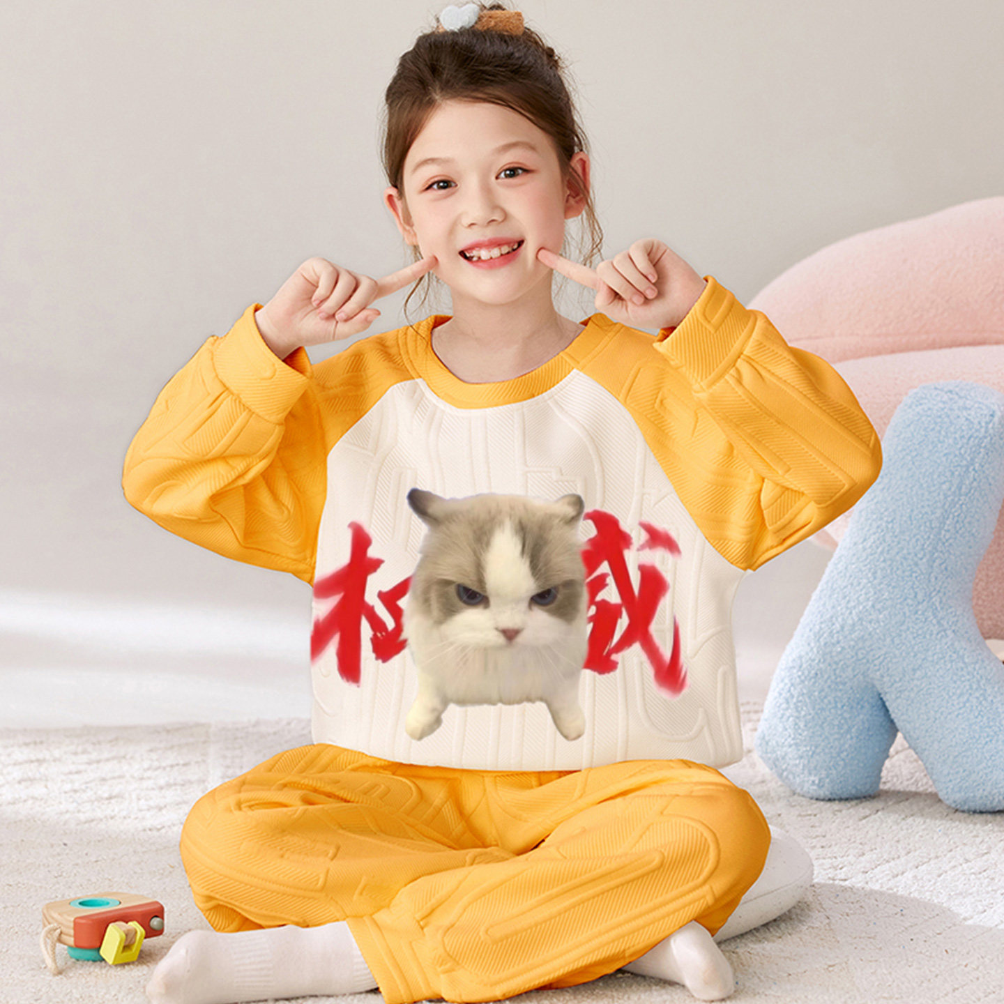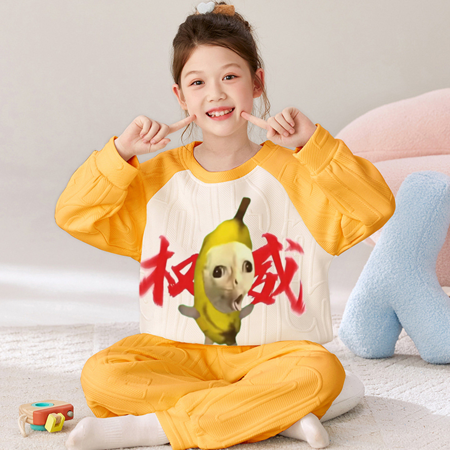 📚 女童睡衣秋冬季款夹层棉2025新款抽象女孩皇上大胆搞笑家居服套装