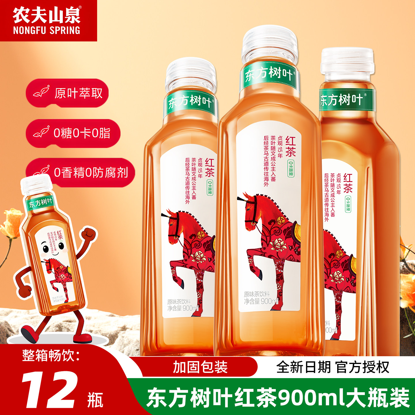 📚 农夫山泉东方树叶红茶900ml*12瓶无糖茉莉花茶陈皮白茶养生茶饮料