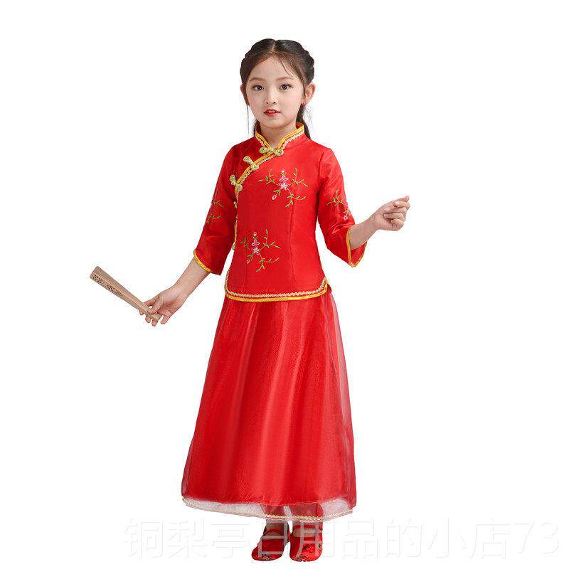 📚 正品儿童中国文化汉服表演装夏服季中诵式朗中华民国女子小学表演