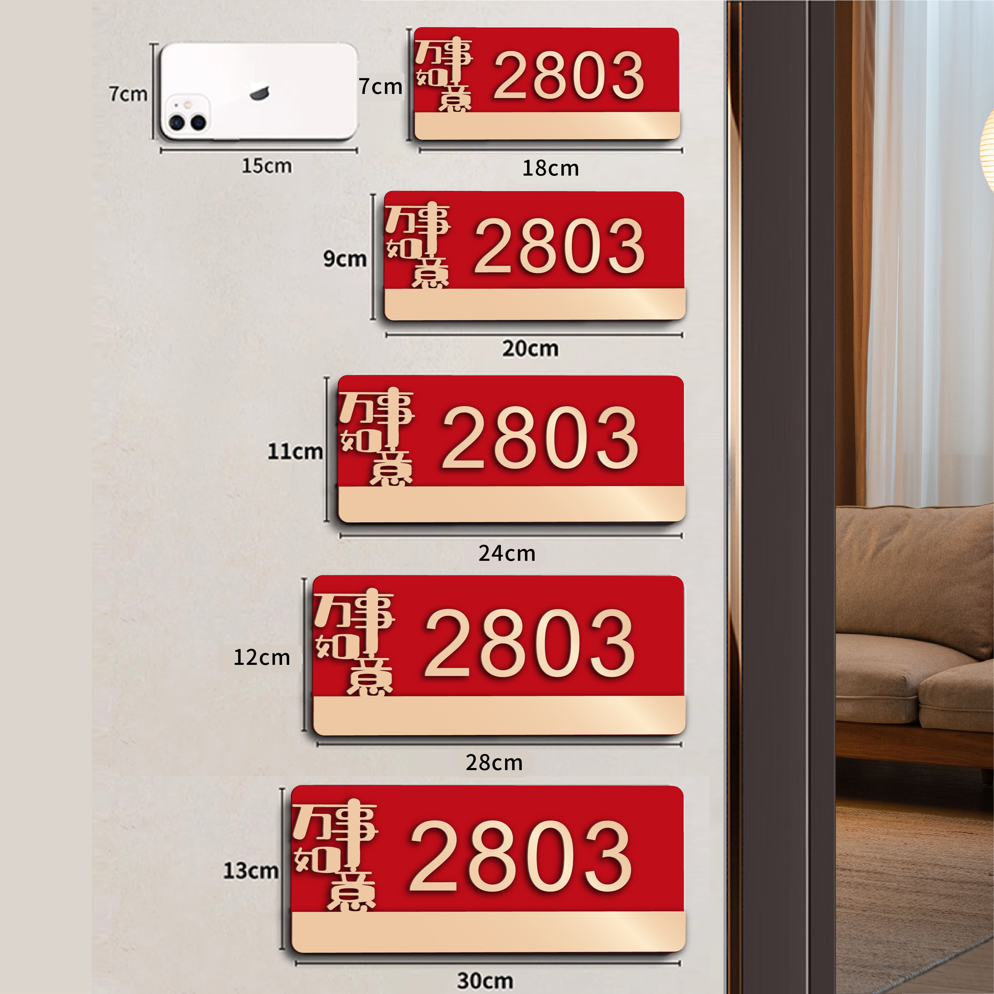 📚 亚克力红底门牌号码牌工作室数字贴门牌定制号码牌家用创意宾馆酒店小区出租房饭店包厢房间房号牌个性定做