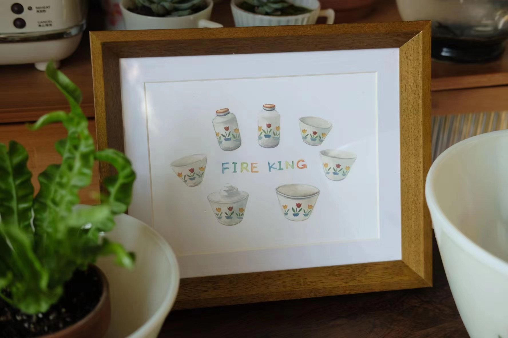 📚 Retro美式fireking图案实木质相框装饰画框挂摆两用家居相架摆件
