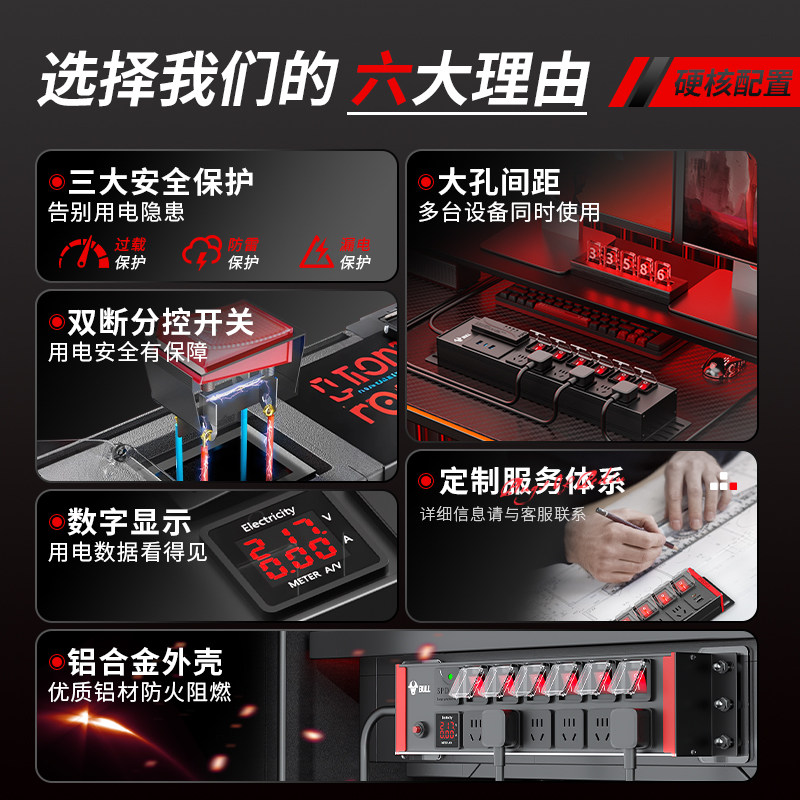📚 公牛PDU分控插排电竞桌面带支架插座防雷抗电涌防过载插座拖线板