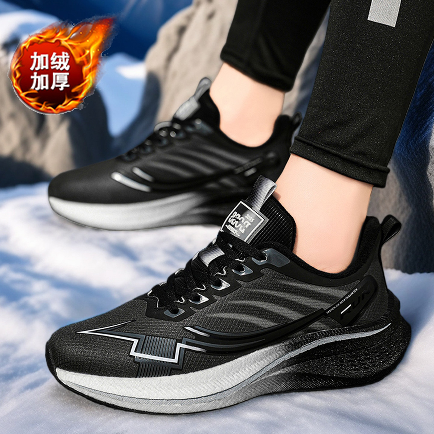 📚 男中大童加绒二棉鞋秋冬季男鞋皮面防水初中学生男孩运动跑鞋大码