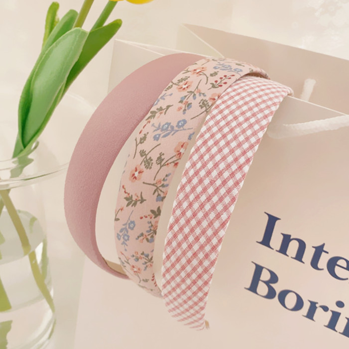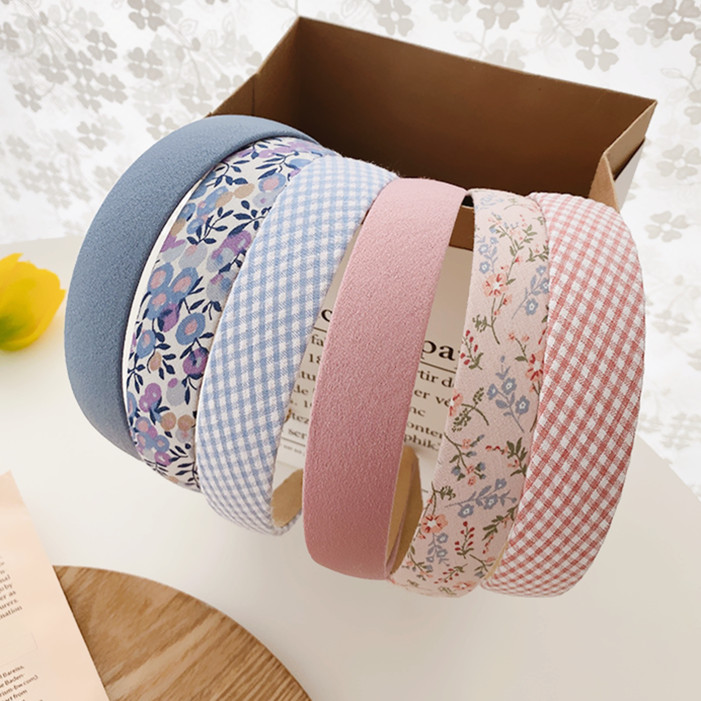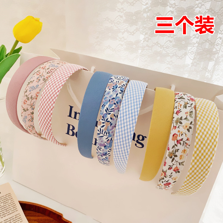 📚 3个装 女童复古碎花发箍宽边儿童头箍简约纯色百搭发卡亲子发饰韩