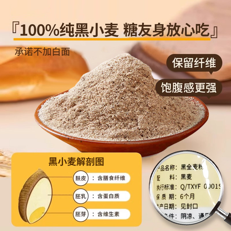 📚 黑全麦面粉糖尿人专用控糖主食无糖精黑麦粉带麸皮家用官方旗舰店